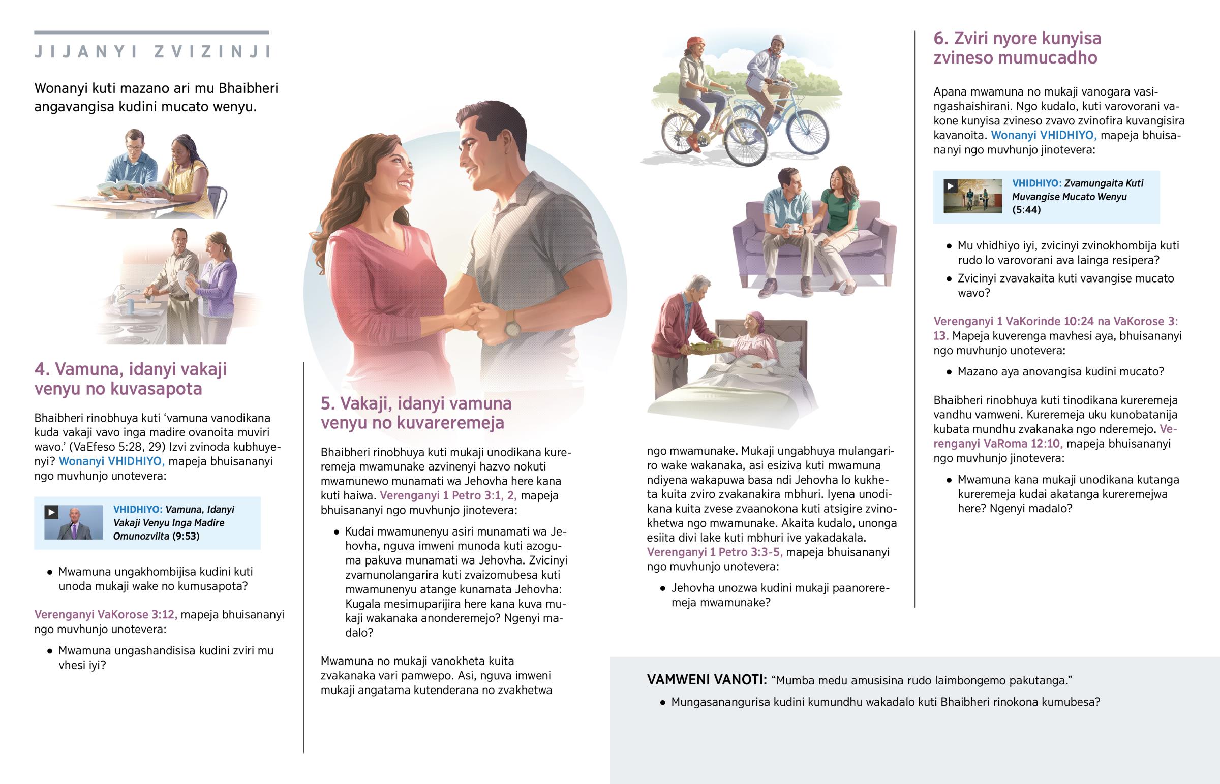 Bhaibheri rinobhuya kuti ‘vamuna vanodikana kuda vakaji vavo inga madire ovanoita muviri wavo.’ (VaEfeso 5:28, 29) Izvi zvinoda kubhuyenyi? Wonanyi VHIDHIYO, mapeja bhuisananyi ngo muvhunjo unotevera: