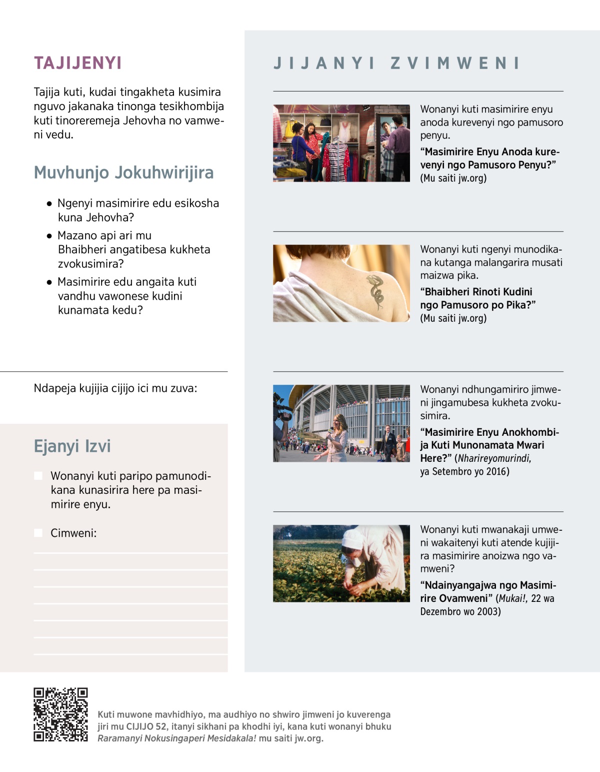 • Ngenyi Zvinokosha Kuti Tilangarire ngo zvo Masimirire edu uye Ciemo Cedu