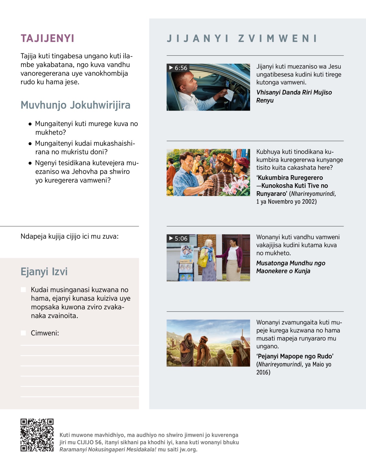 Patinoita ushamwari no hama no hanzvaji jedu, tinokona kuwona zvakanaka zvovanoita no zvovanoshaisha. Tingaitenyi kuti tigare tesilangarira mugariro yakanaka yo hama no hanzvaji jedu? Wonanyi VHIDHIYO, mapeja bhuisananyi ngo muvhunjo unotevera: