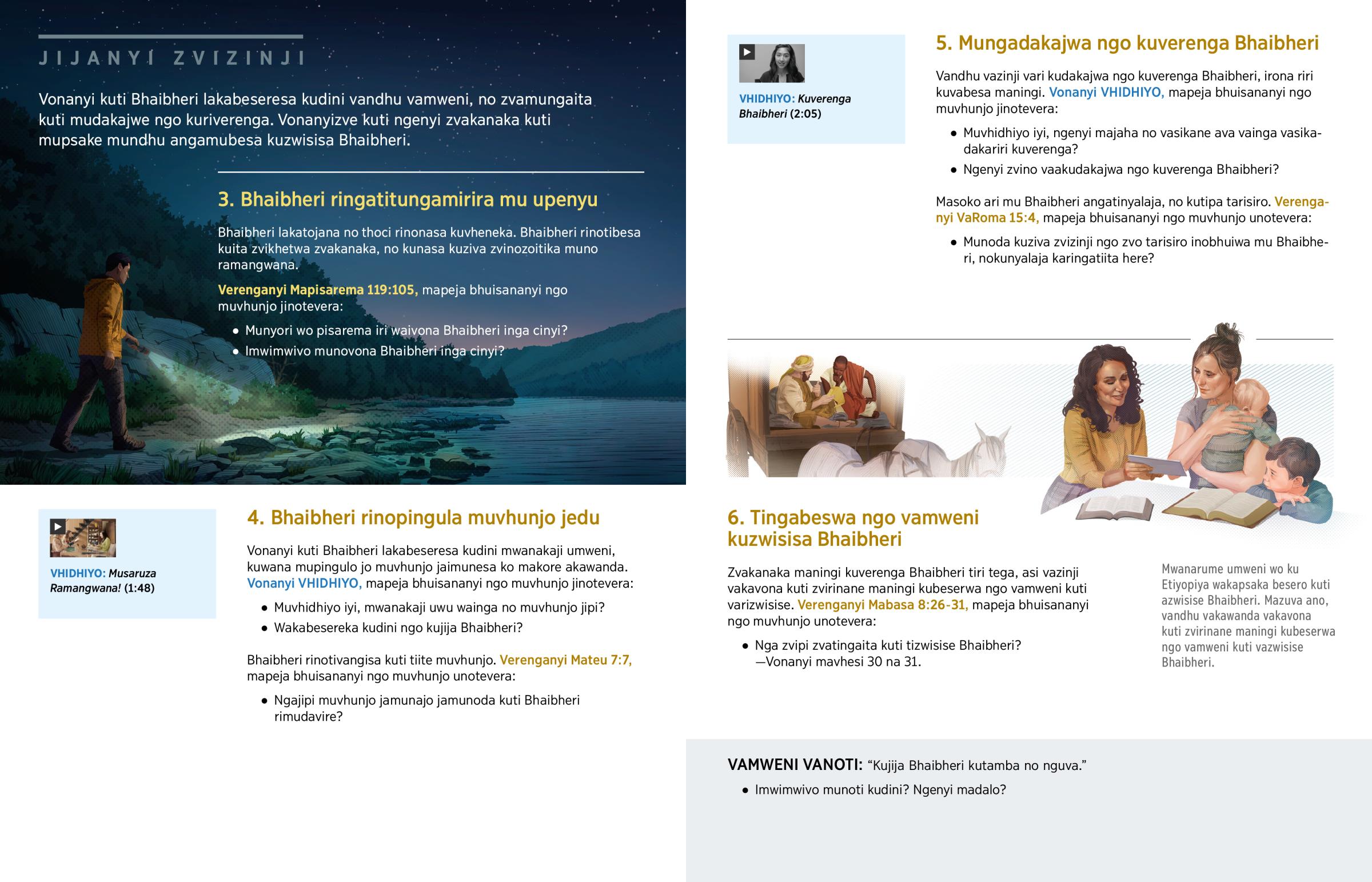 Vandhu vazinji vari kudakajwa ngo kuverenga Bhaibheri, irona riri kuvabesa maningi. Vonanyi VHIDHIYO, mapeja bhuisananyi ngo muvhunjo jinotevera: