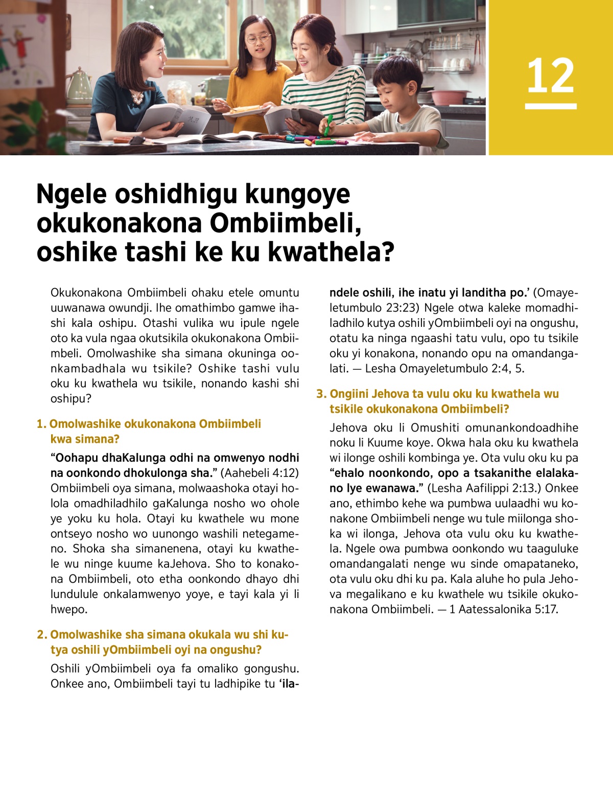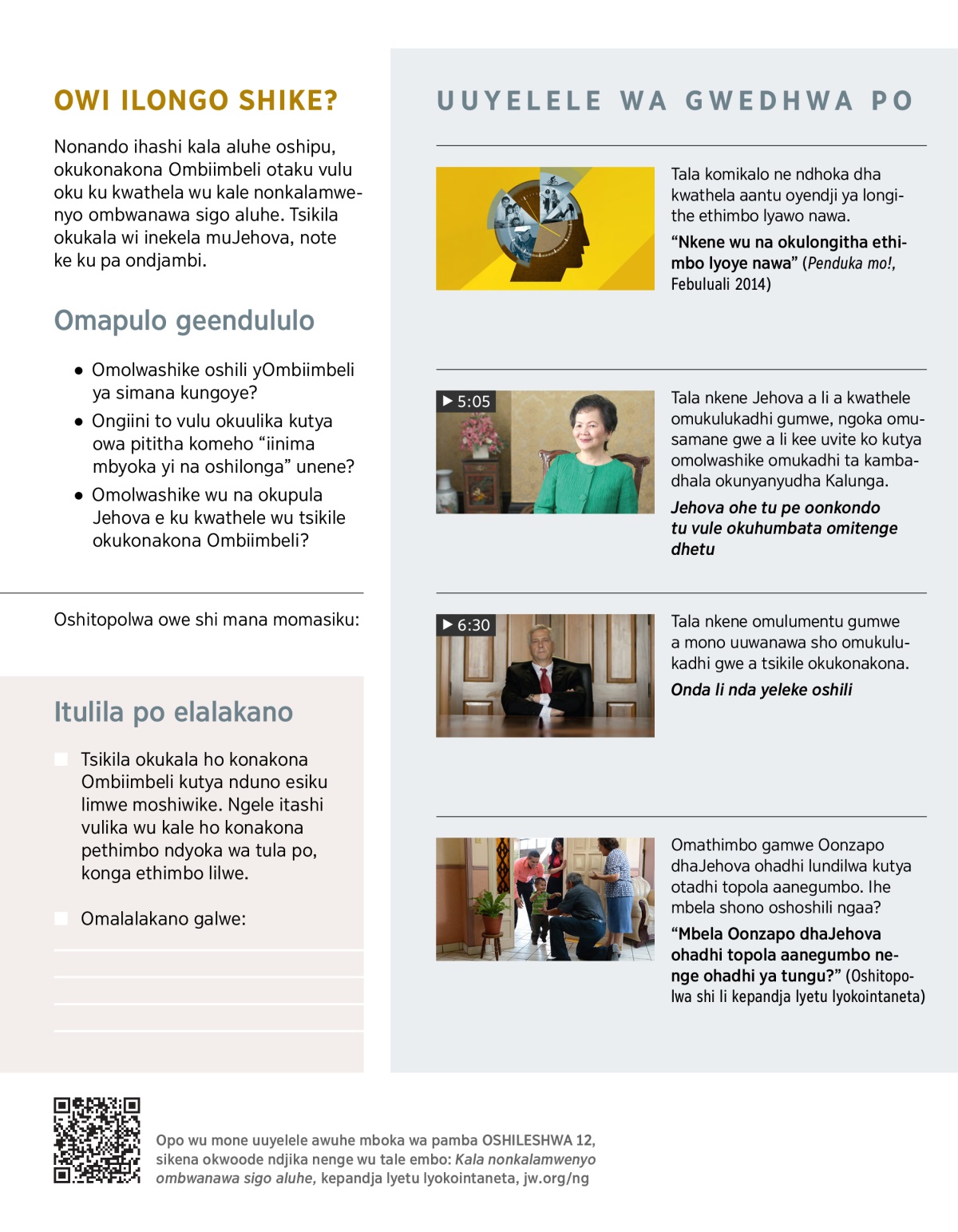 • Ngele oshidhigu kungoye okukonakona Ombiimbeli, oshike tashi ku kwathele?