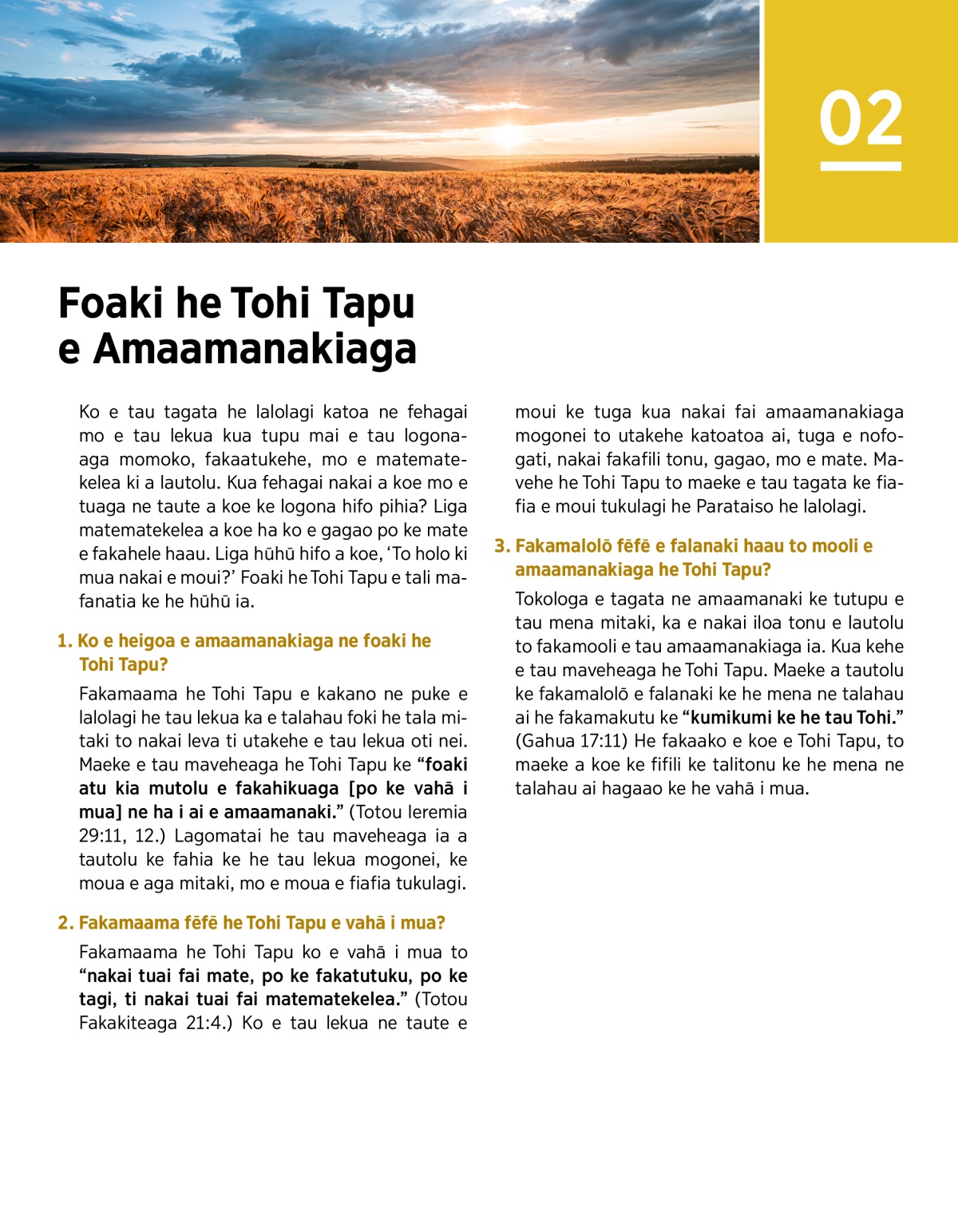 1. Ko e heigoa e amaamanakiaga ne foaki he Tohi Tapu?