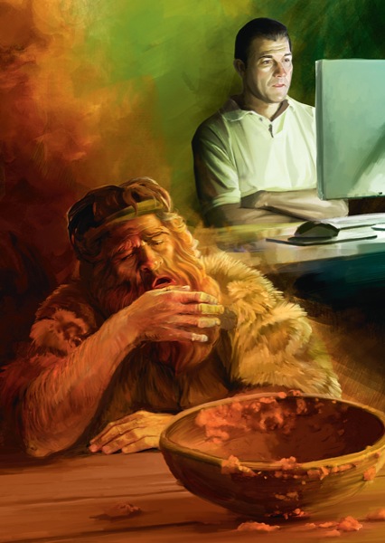 5 Ke maeke ia tautolu ke nakai galo e tufaaga ha tautolu, kua lata ia tautolu ke mataala ke kalo kehe he tau matahele ha Satani. Lali tumau a Satani ke kamatamata e tau tagata he Atua ke taute e tau fifiliaga kelea ke galo ha lautolu a tufaaga. (Nume. 25:1-3, 9) Iloa e Satani to nakai leva ti moumou a ia, ti eketaha fakalahi a ia ke kamatamata a tautolu ke taute e mena hepe. (Totou Fakakiteaga 12:12, 17.) Ka manako a tautolu ke “totoko atu ke he tau lagatau he tiapolo,” kua lata ia tautolu ke loto fakaaue tumau ke he tufaaga ha tautolu. (Efeso 6:11) Maeke ia tautolu ke ako e tau fakaakoaga aoga mai he puhala ne onoono a Esau ko e tama uluaki ha Isaako ke he tufaaga haana.