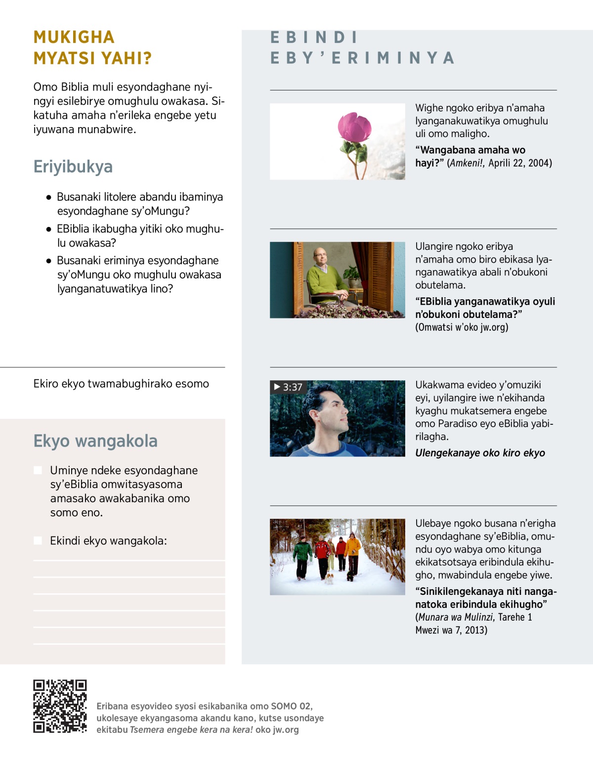 “EBiblia yanganawatikya oyuli n’obukoni obutelama?” (Omwatsi w’oko jw.org)