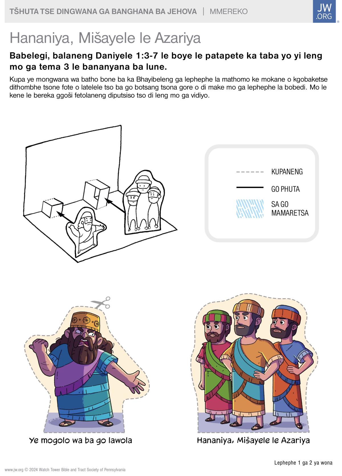 Berekisa dilo tsowa tsa gore ba di phrinthiye gore o thogo tšhuta se sengwana ga banghana bowa ba Jehova—Hananiya, Mišayele le Azariya.