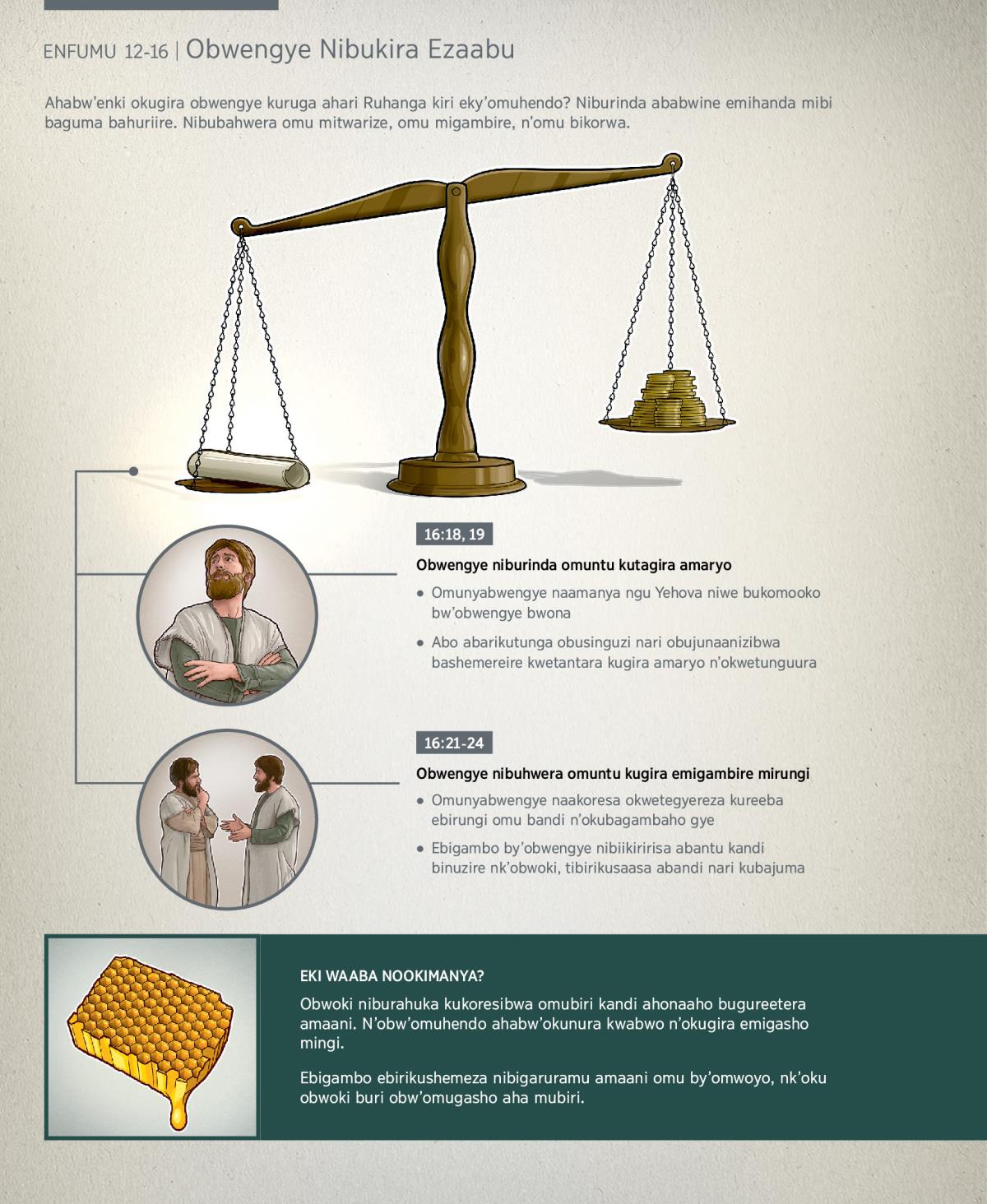 Ahabw’enki okugira obwengye kuruga ahari Ruhanga kiri eky’omuhendo? Niburinda ababwine emihanda mibi baguma bahuriire. Nibubahwera omu mitwarize, omu migambire, n’omu bikorwa.