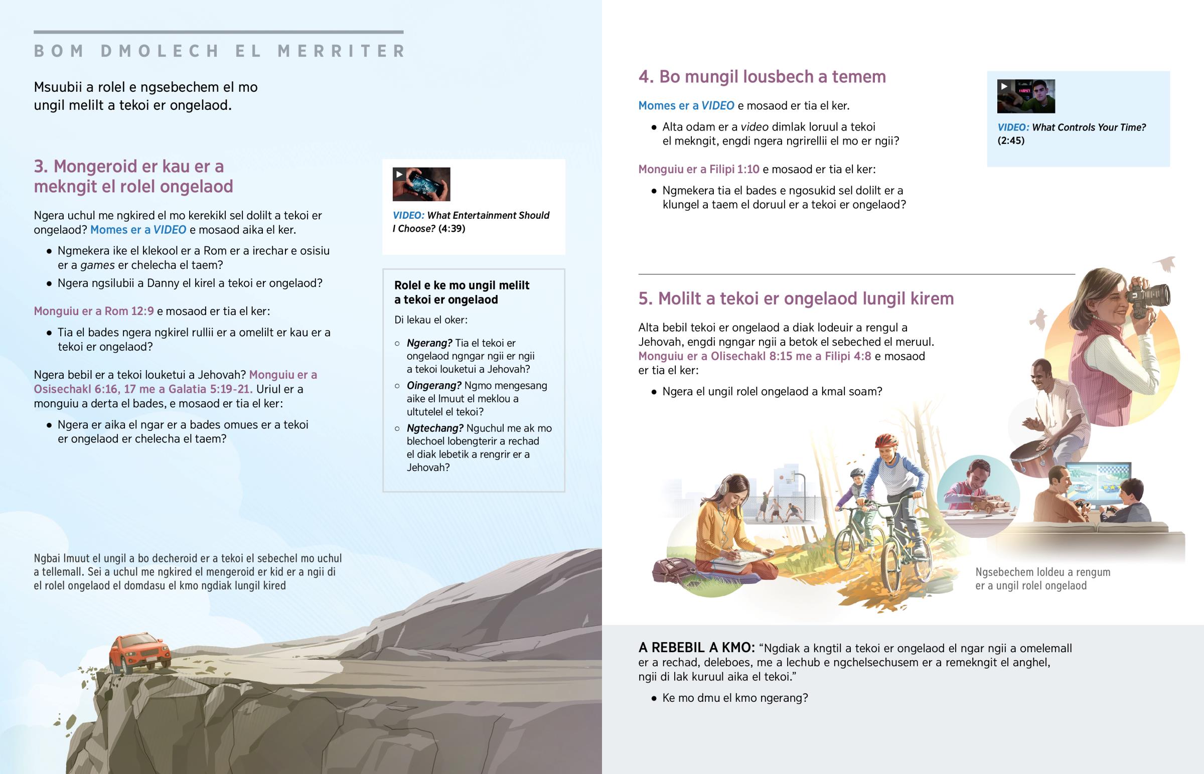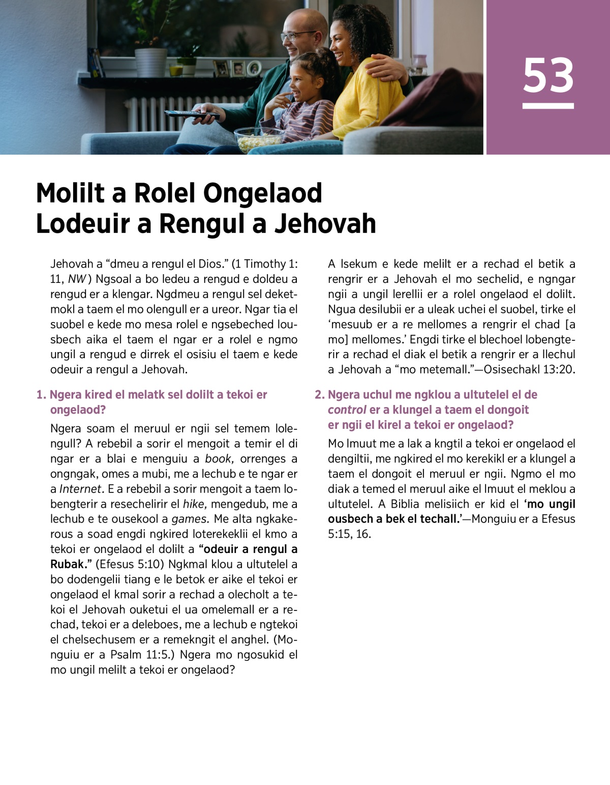 Alta bebil tekoi er ongelaod a diak lodeuir a rengul a Jehovah, engdi ngngar ngii a betok el sebeched el meruul. Monguiu er a Olisechakl 8:15 me a Filipi 4:8 e mosaod er tia el ker: