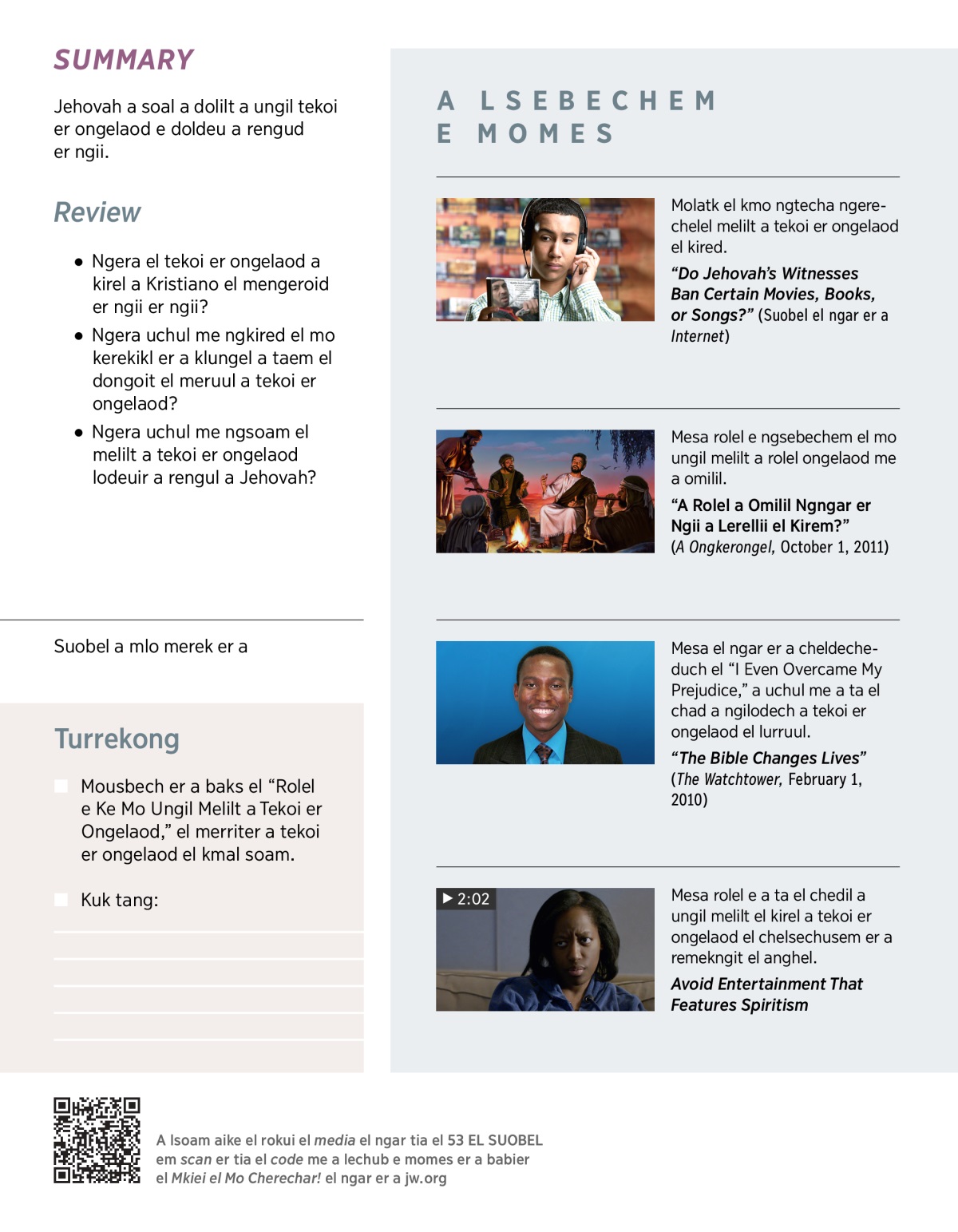 “Do Jehovah’s Witnesses Ban Certain Movies, Books, or Songs?” (Suobel el ngar er a Internet)