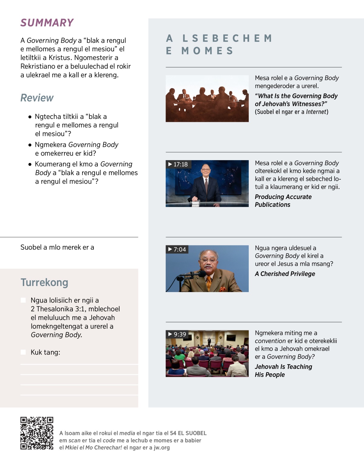 Berkel a klumech a sel kot el klou a ultutelel el ureor el loruul er ngii a Governing Body. Momes er a VIDEO.