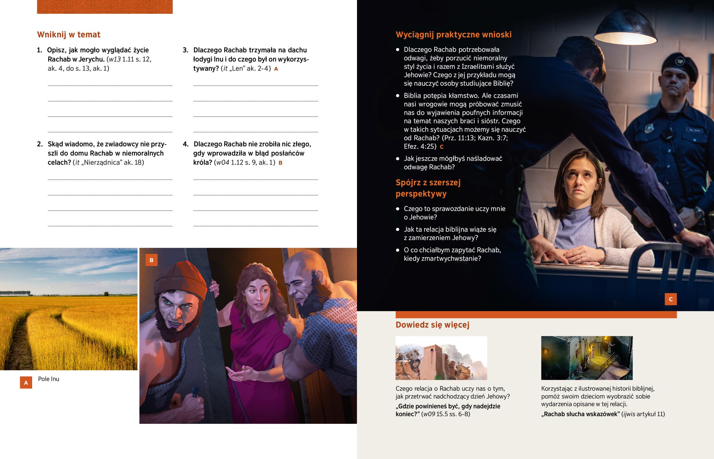 1. Opisz, jak mogło wyglądać życie Rachab w Jerychu. (w13 1.11 s. 12, ak. 4, do s. 13, ak. 1)