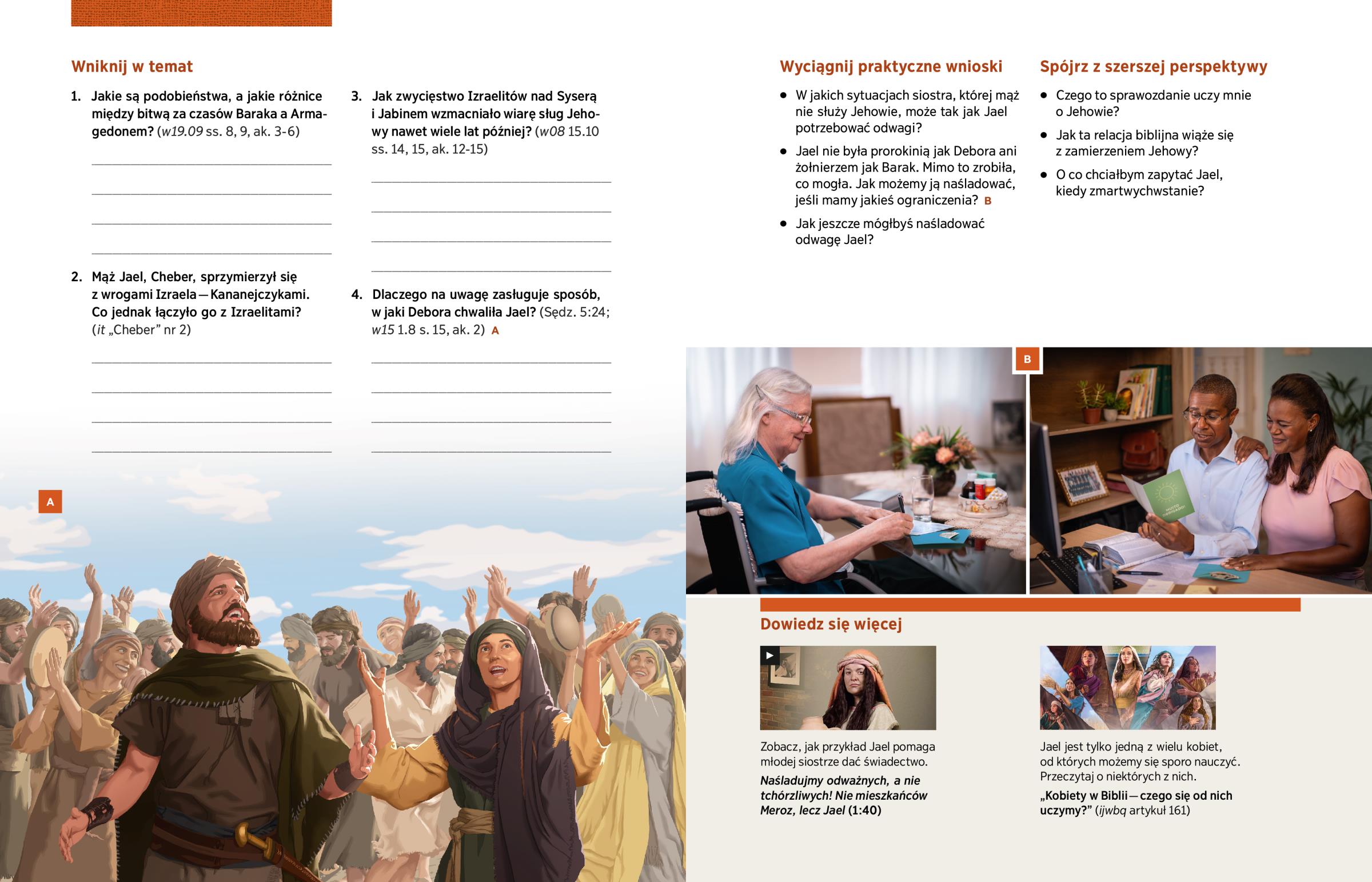 4. Dlaczego na uwagę zasługuje sposób, w jaki Debora chwaliła Jael? (Sędz. 5:24; w15 1.8 s. 15, ak. 2) A
