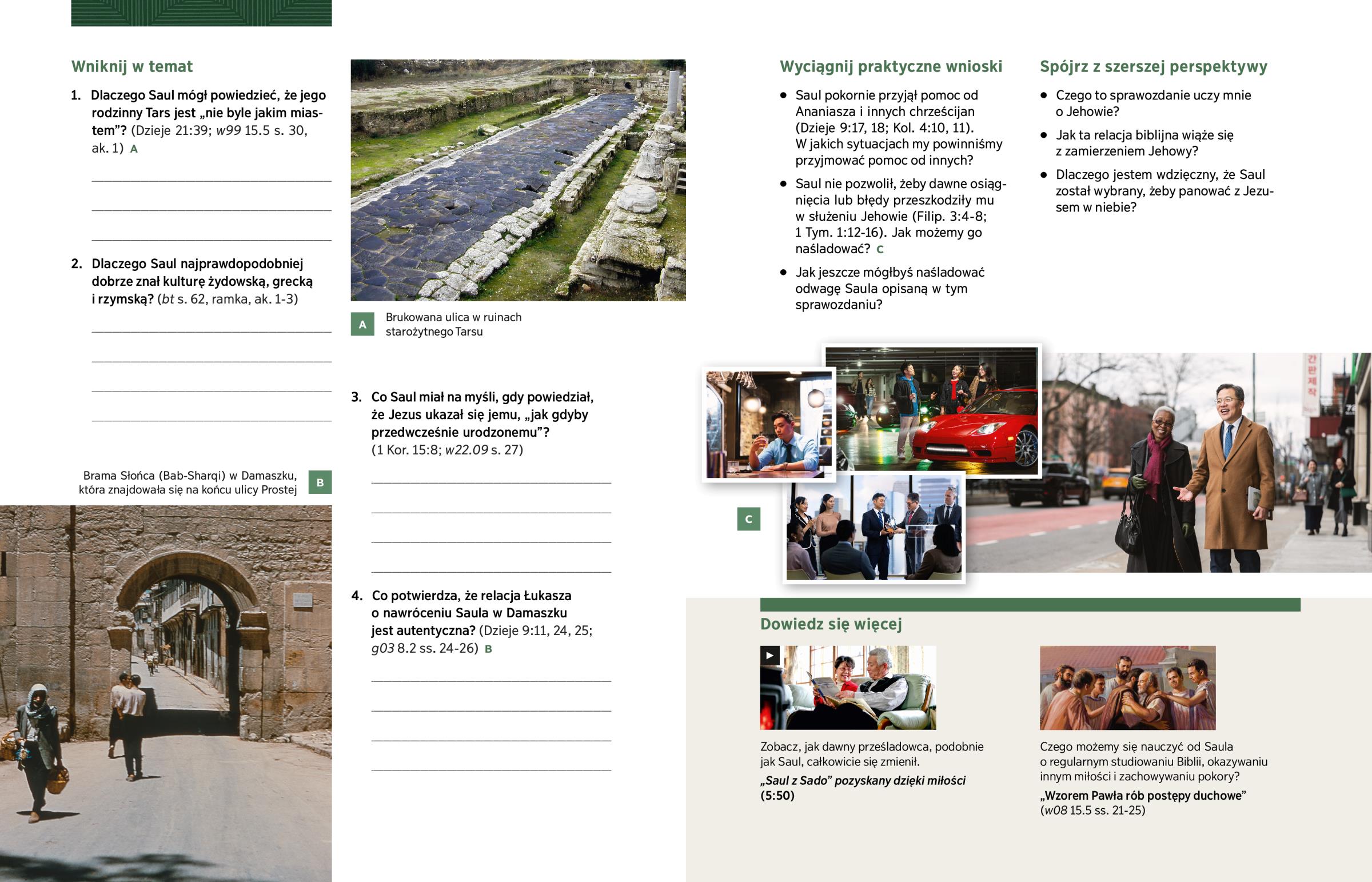 Saul pokornie przyjął pomoc od Ananiasza i innych chrześcijan (Dzieje 9:17, 18; Kol. 4:10, 11). W jakich sytuacjach my powinniśmy przyjmować pomoc od innych?