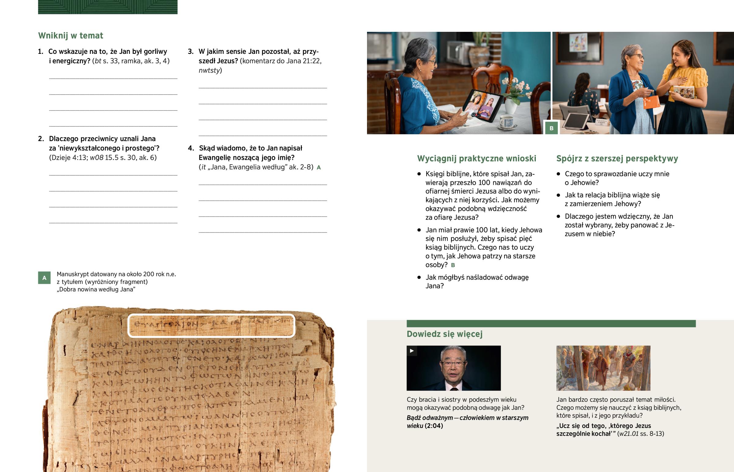 Jan miał prawie 100 lat, kiedy Jehowa się nim posłużył, żeby spisać pięć ksiąg biblijnych. Czego nas to uczy o tym, jak Jehowa patrzy na starsze osoby? B