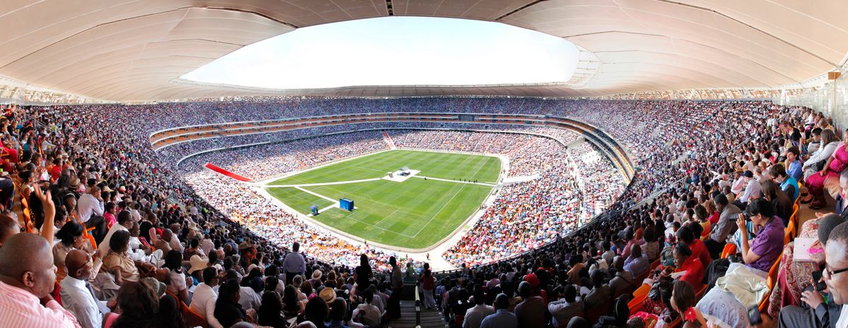 Wielka rzesza Świadków pochodzących z różnych ras na stadionie FNB w Johannesburgu, rok 2011