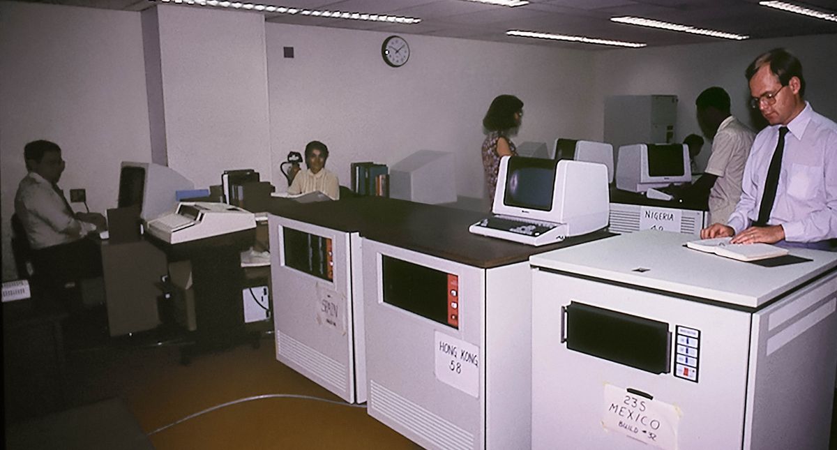 Em 1988, fomos enviados para o Myanmar, um país que faz fronteira com a China, a Índia e a Tailândia. Naquela altura, havia muita agitação política e a maior parte do país era controlada pelos militares. O sistema de escrita usado no Myanmar era muito diferente do alfabeto latino. Nem o MEPS nem nenhum outro programa informático estava preparado para usar esse sistema de escrita. Por isso, tínhamos de ajudar a desenhar os caracteres e depois trazê-los para Wallkill e inseri-los no MEPS.