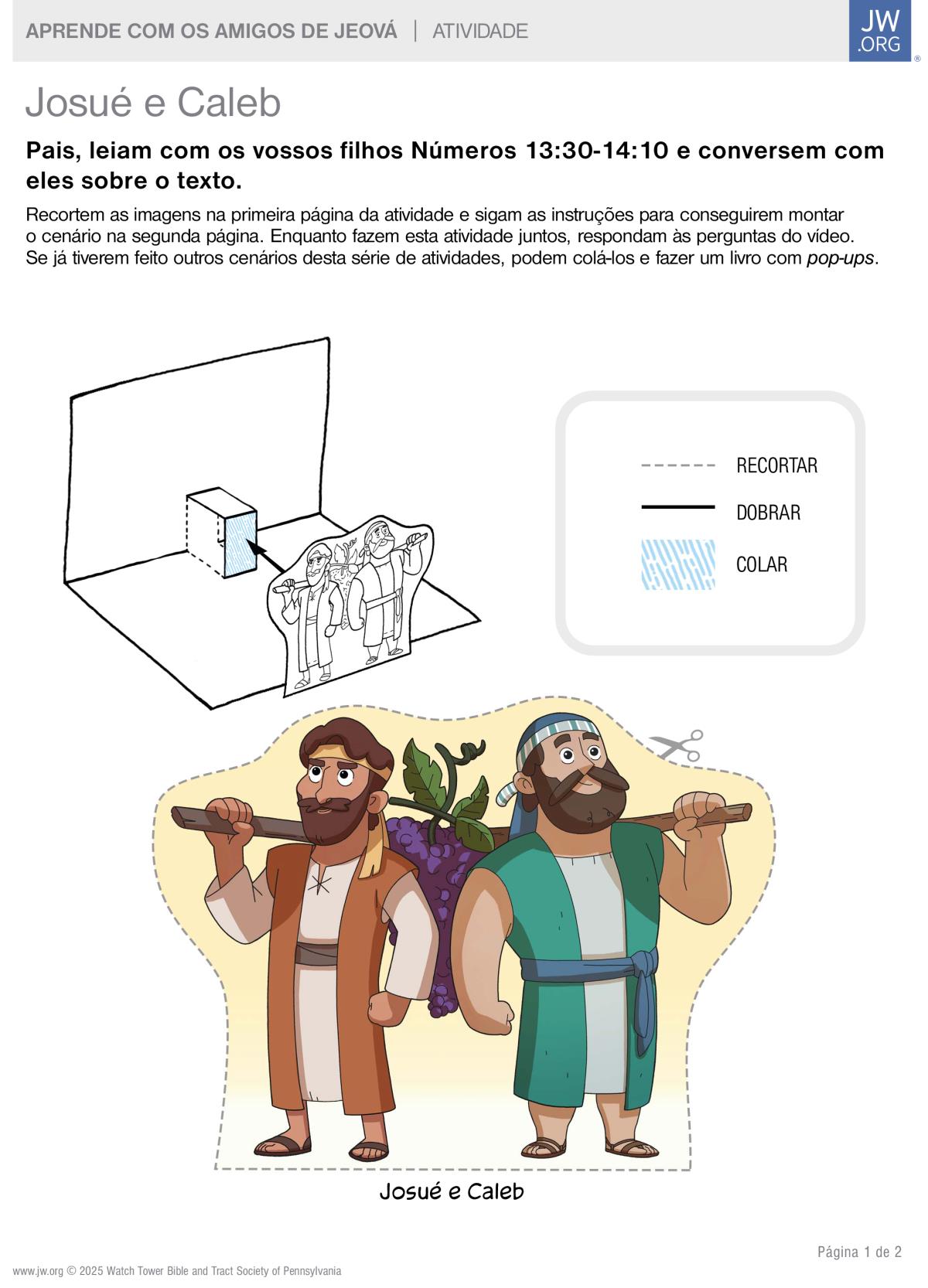 Usa esta atividade para aprenderes com os amigos de Jeová: Josué e Caleb.