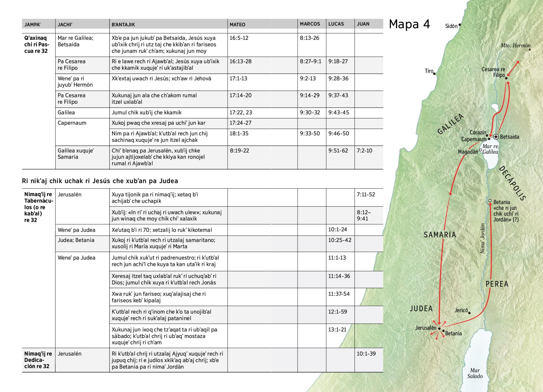 Ri kʼutbʼal chrij ri utzalaj Ajyuqʼ xuqujeʼ rech ri jupuq chij; ri e judíos xkikʼaq abʼaj chrij; xbʼe pa Betania pa ri nimaʼ Jordán |