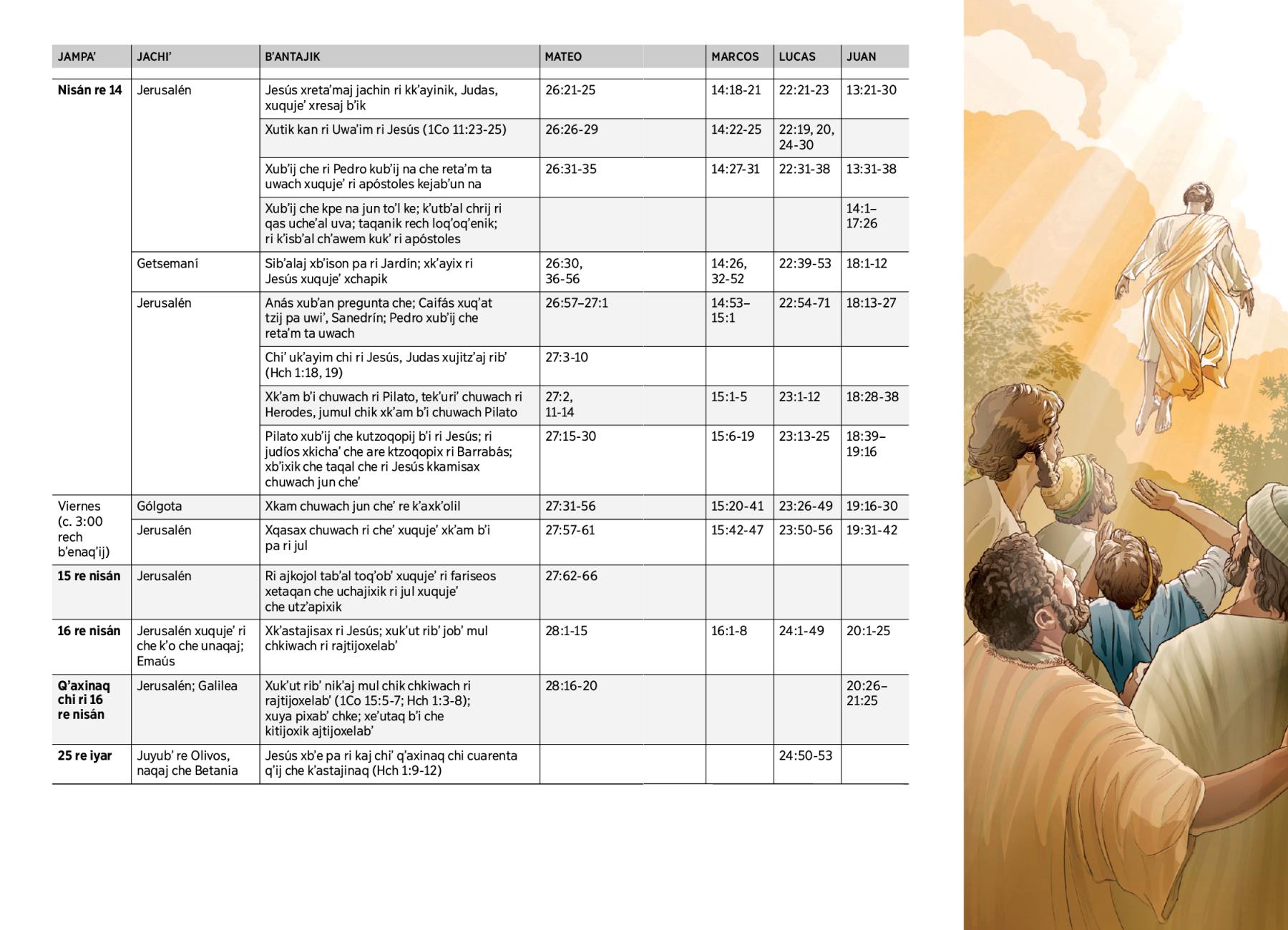 Xubʼij che kpe na jun toʼl ke; kʼutbʼal chrij ri qas ucheʼal uva; taqanik rech loqʼoqʼenik; ri kʼisbʼal chʼawem kukʼ ri apóstoles |