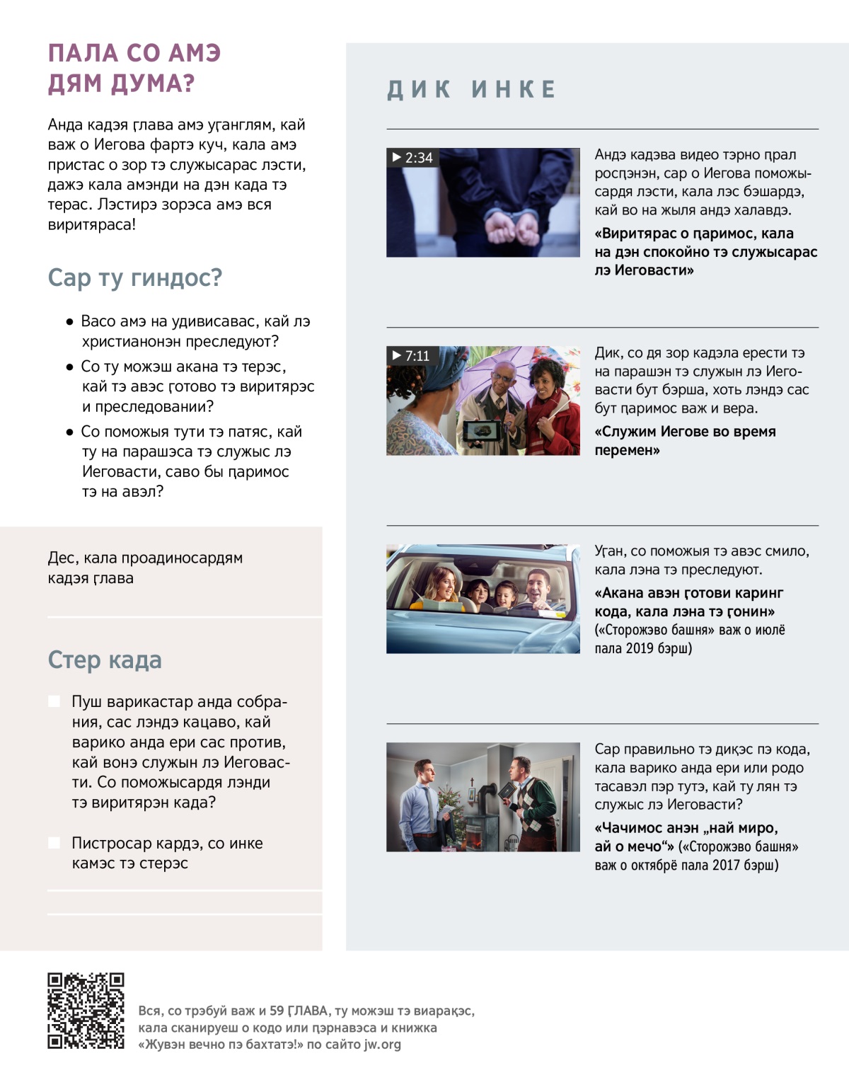 Па вся и люма лэ Иеговастирэ свидетеля, и тэрнэ и взросли, на парашэн тэ служын лэ Иеговасти, дажэ кала лэн преследуют. Катар лэндэ зор тэ виритярэн кацаво ԥаримос? Диқам о ВИДЕО и подам дума пала вопросо, саво май тэлэ.