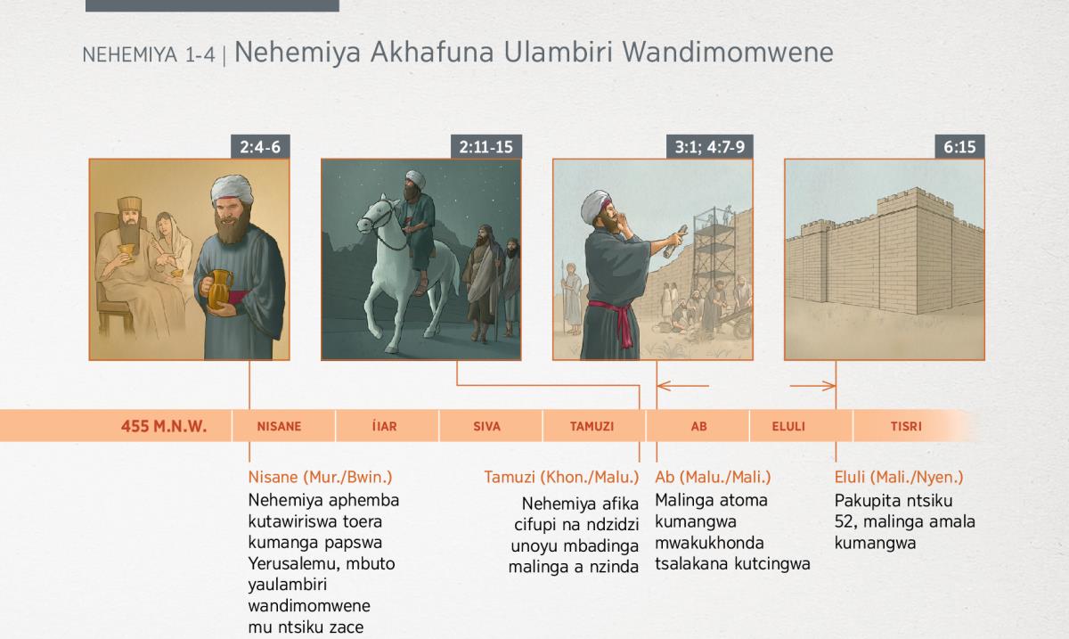 2:4-6 Nehemiya aphemba kutawiriswa toera kumanga papswa Yerusalemu, mbuto yaulambiri wandimomwene mu ntsiku zace