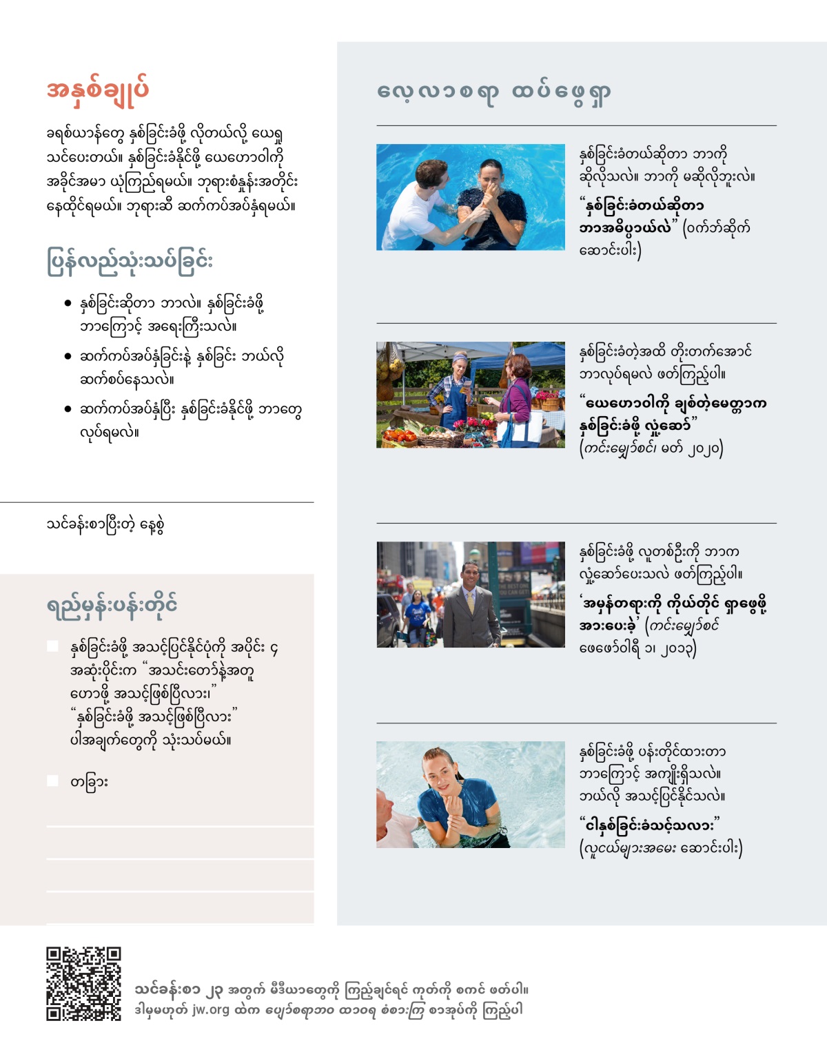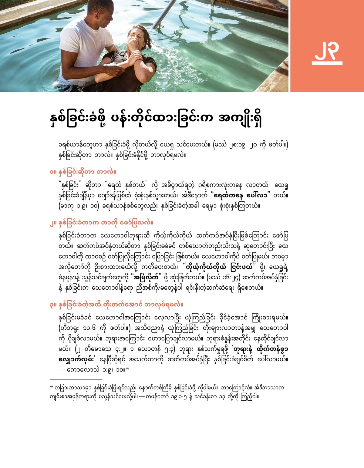ယေရှုရဲ့ နှစ်ခြင်းကနေ ဘာတွေ သိရသလဲ၊ နှစ်ခြင်းခံနိုင်ဖို့ ဘာတွေ လုပ်ရမလဲဆိုတာ လေ့လာကြည့်ပါ။