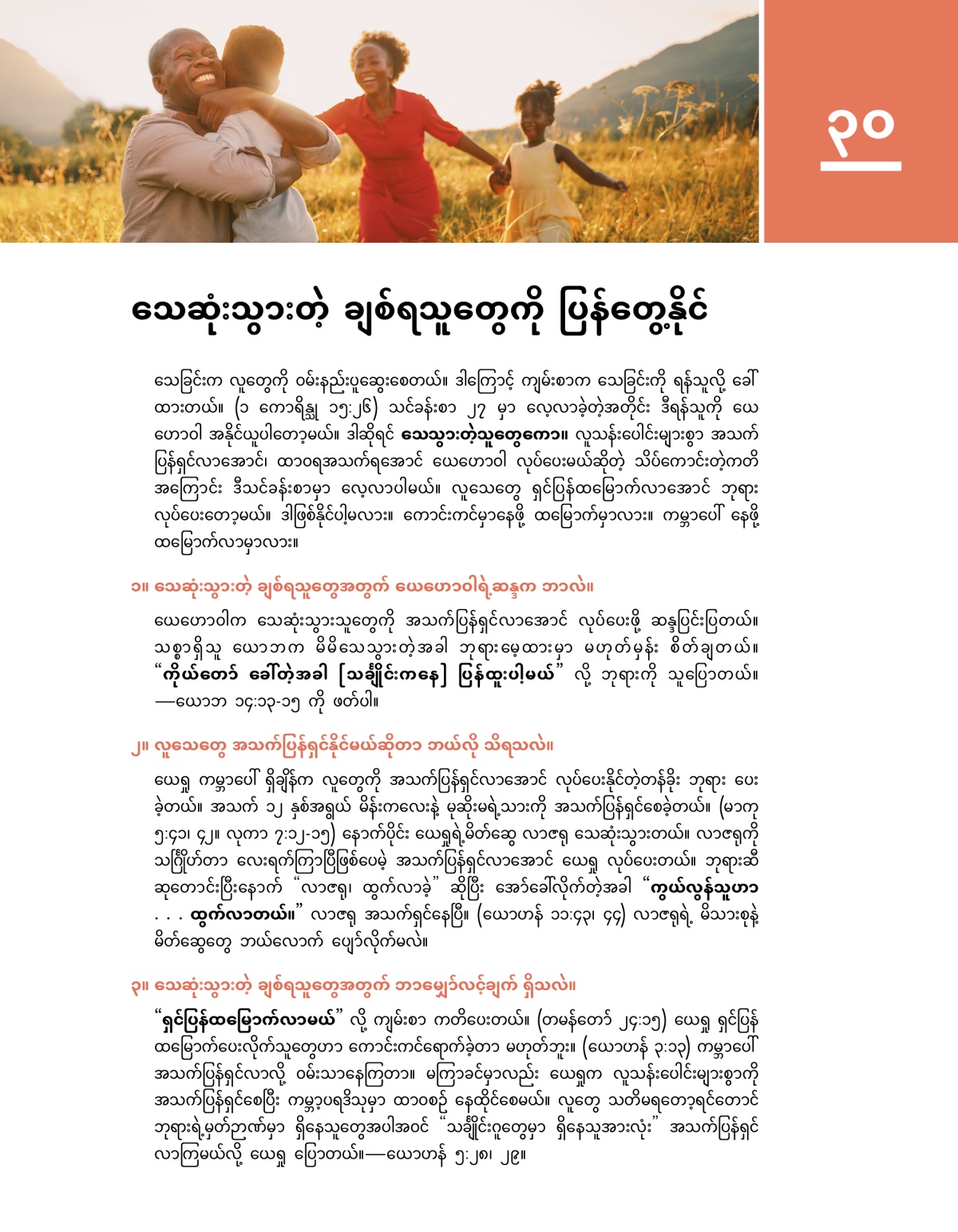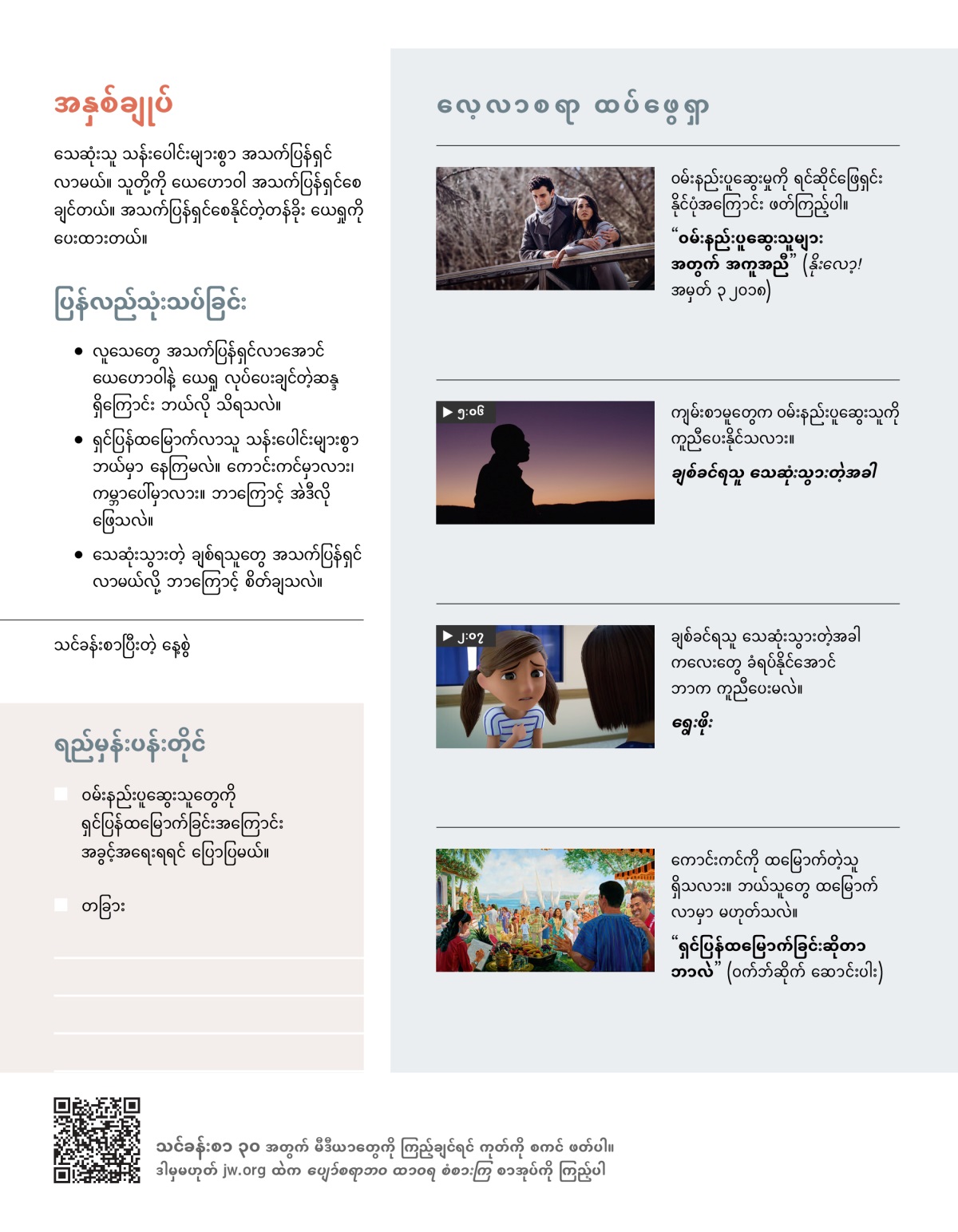လူသေတွေ အသက်ပြန်ရှင်နိုင်တယ်၊ အသက်ပြန်ရှင်လာကြမယ်ဆိုတဲ့ ကျမ်းစာအထောက်အထားကို ဆန်းစစ်ပါ။ ရှင်ပြန်ထမြောက်ခြင်းက နှစ်သိမ့်မှုနဲ့ မျှော်လင့်ချက် ပေးနိုင်ပုံကို လေ့လာပါ။