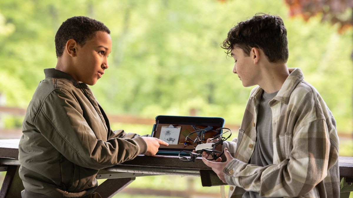 d ပုံအညွှန်း– အလိုလို ဖြစ်လာတာလား ကဏ္ဍထဲက ဗီဒီယိုတစ်ခုကို ညီအစ်ကိုလေးတစ်ယောက် အတန်းဖော်ကို ပြနေ။