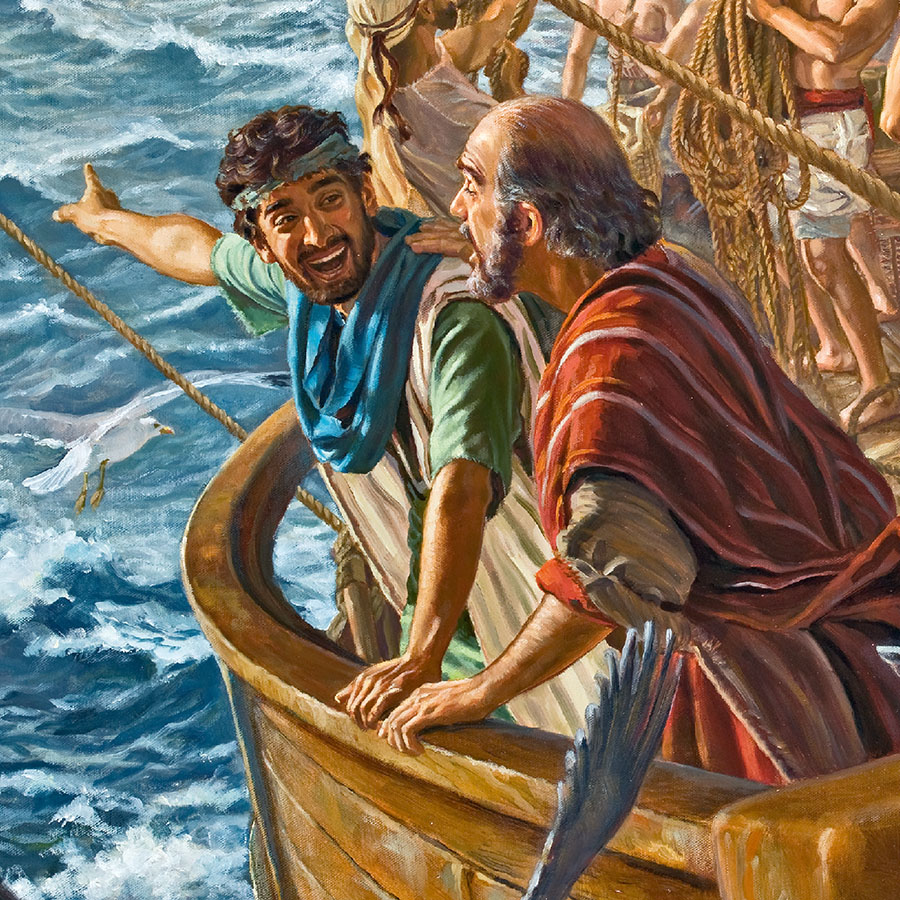 Tsamba 54 Petulo waika dzanja lake pa wophunzira watsopano. Simoni wanyamula kathumba ka ndalama.