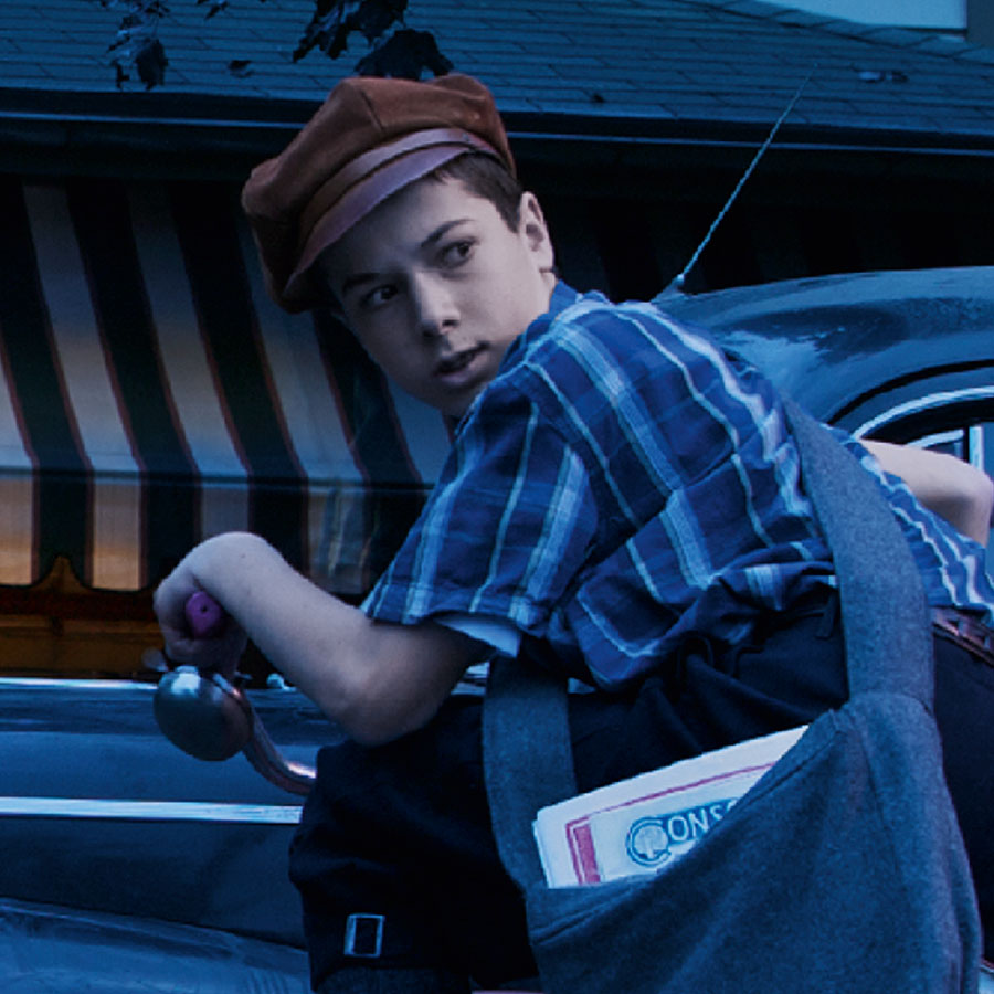 Tsamba 180 M’munsi: Mabuku a Mboni za Yehova ataletsedwa ku Canada m’ma 1940, wa Mboni wachinyamata wabweretsa mozemba mabuku ofotokoza za m’Baibulo. (Zongoyerekezera.)