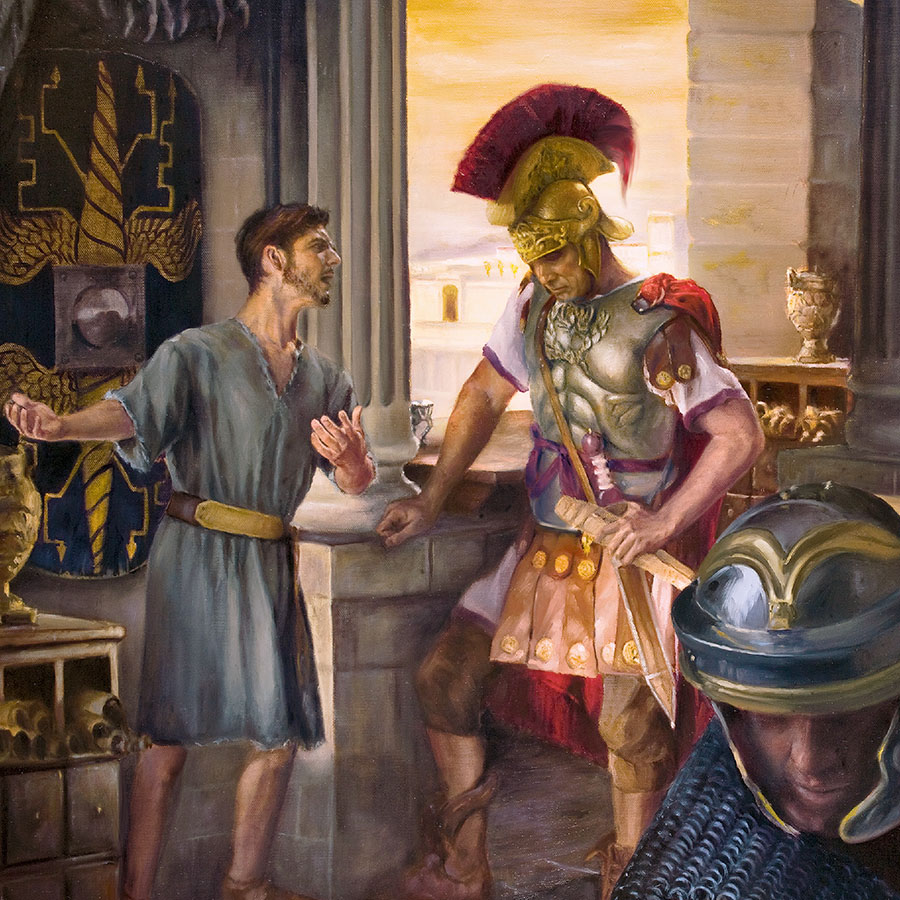 Tsamba 190 Mwana wa mlongo wake wa Paulo akulankhula ndi Kalaudiyo Lusiya mu Nsanja ya Antoniya kumene mwina Paulo anaikidwa m’ndende. Kachisi wa Herode akuoneka chakumbuyoko.
