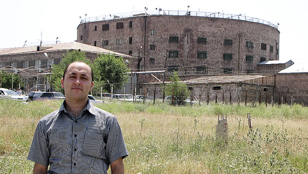Vahan Bajatjan pred väznicou Nubarašen v Arménsku