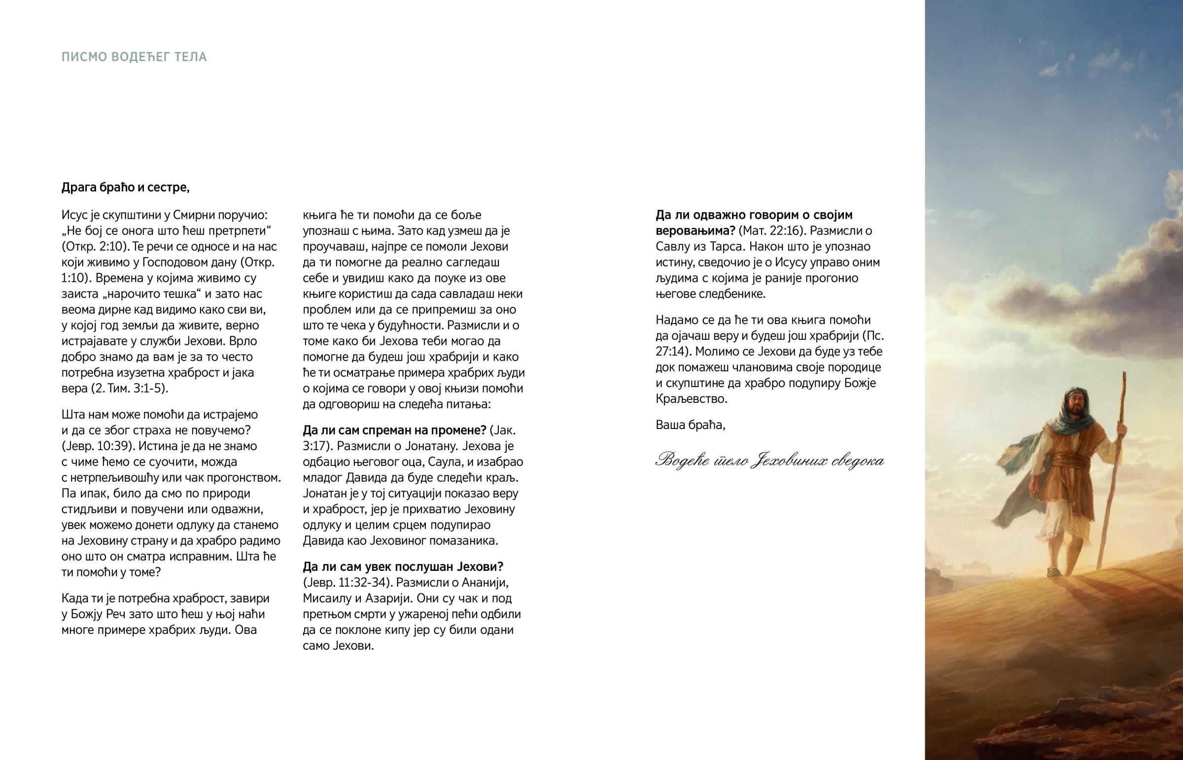 Надамо се да ће ти ова књига помоћи да ојачаш веру и будеш још храбрији (Пс. 27:14). Молимо се Јехови да буде уз тебе док помажеш члановима своје породице и скупштине да храбро подупиру Божје Краљевство.