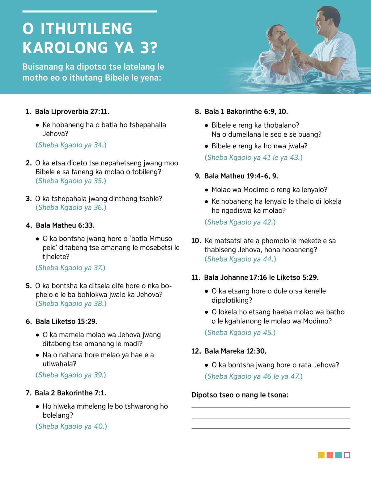 Buisanang ka dipotso tse latelang le motho eo o ithutang Bibele le yena:
