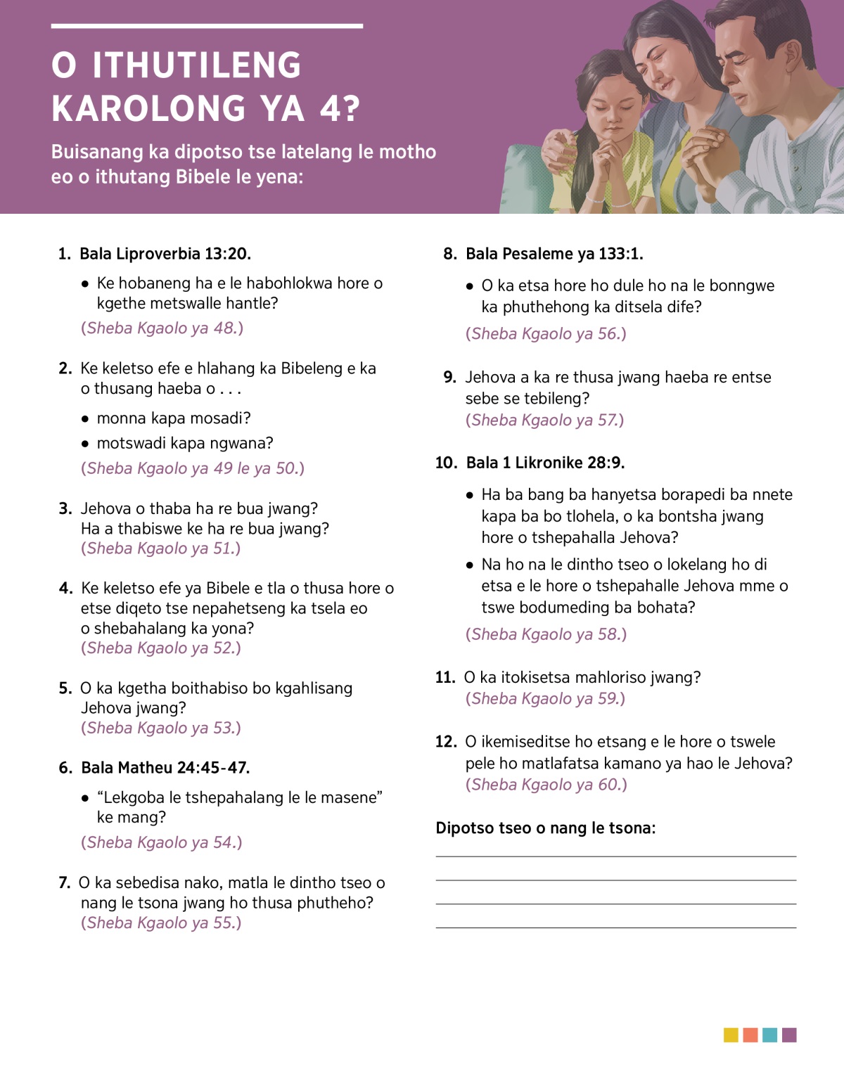 Buisanang ka dipotso tse latelang le motho eo o ithutang Bibele le yena: