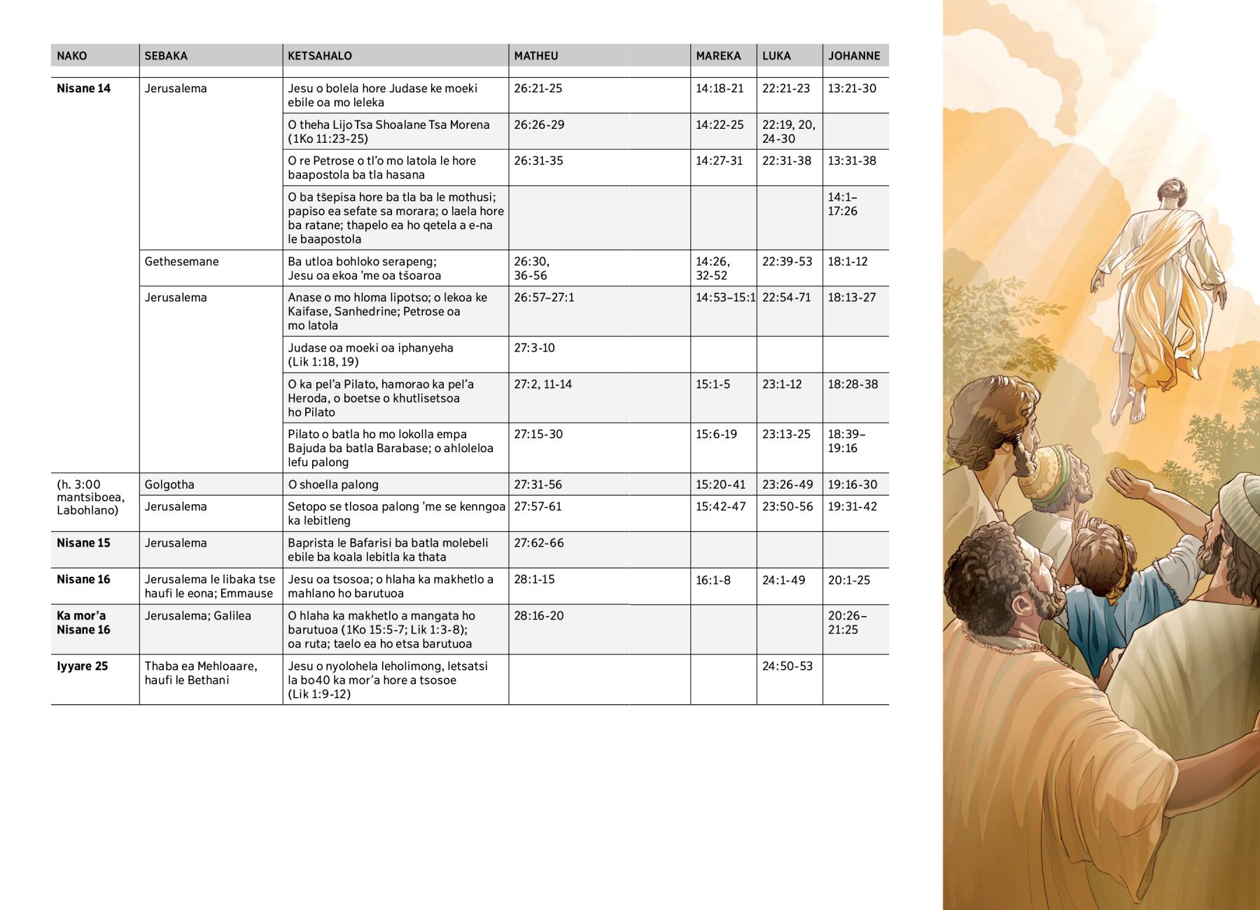 Jesu o nyolohela leholimong, letsatsi la bo40 ka mor’a hore a tsosoe (Lik 1:9-12) |