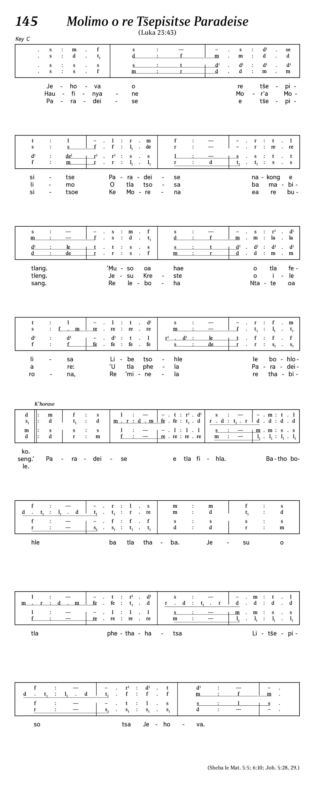 ‘U tla phela Paradeiseng.’