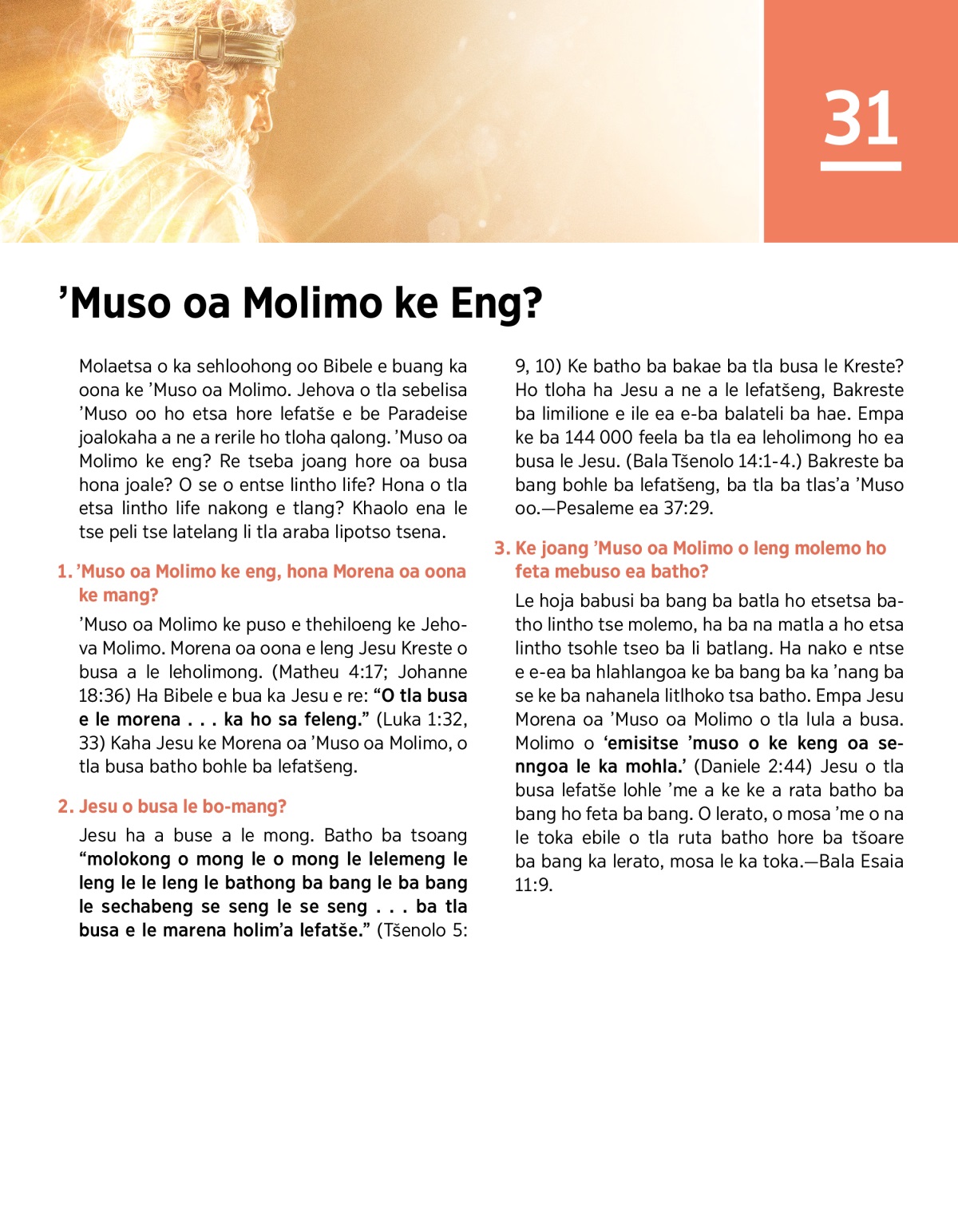 1. ’Muso oa Molimo ke eng, hona Morena oa oona ke mang?