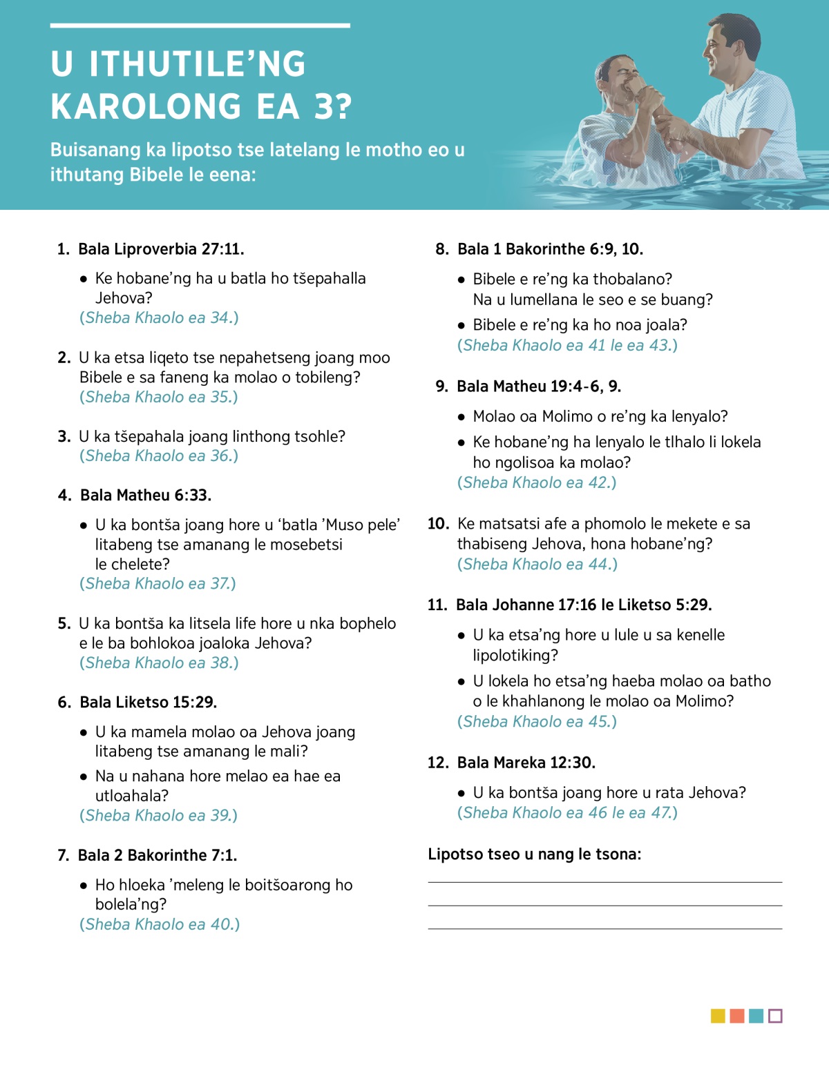 Buisanang ka lipotso tse latelang le motho eo u ithutang Bibele le eena: