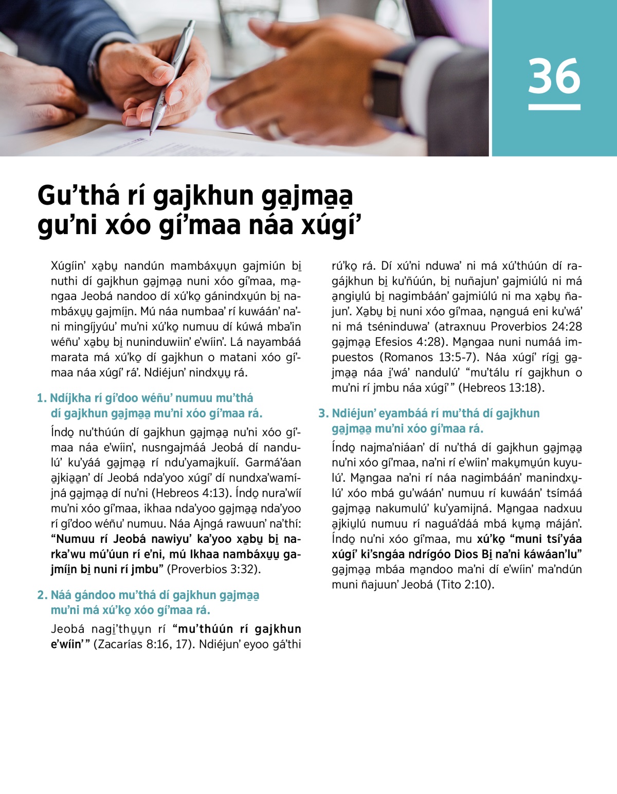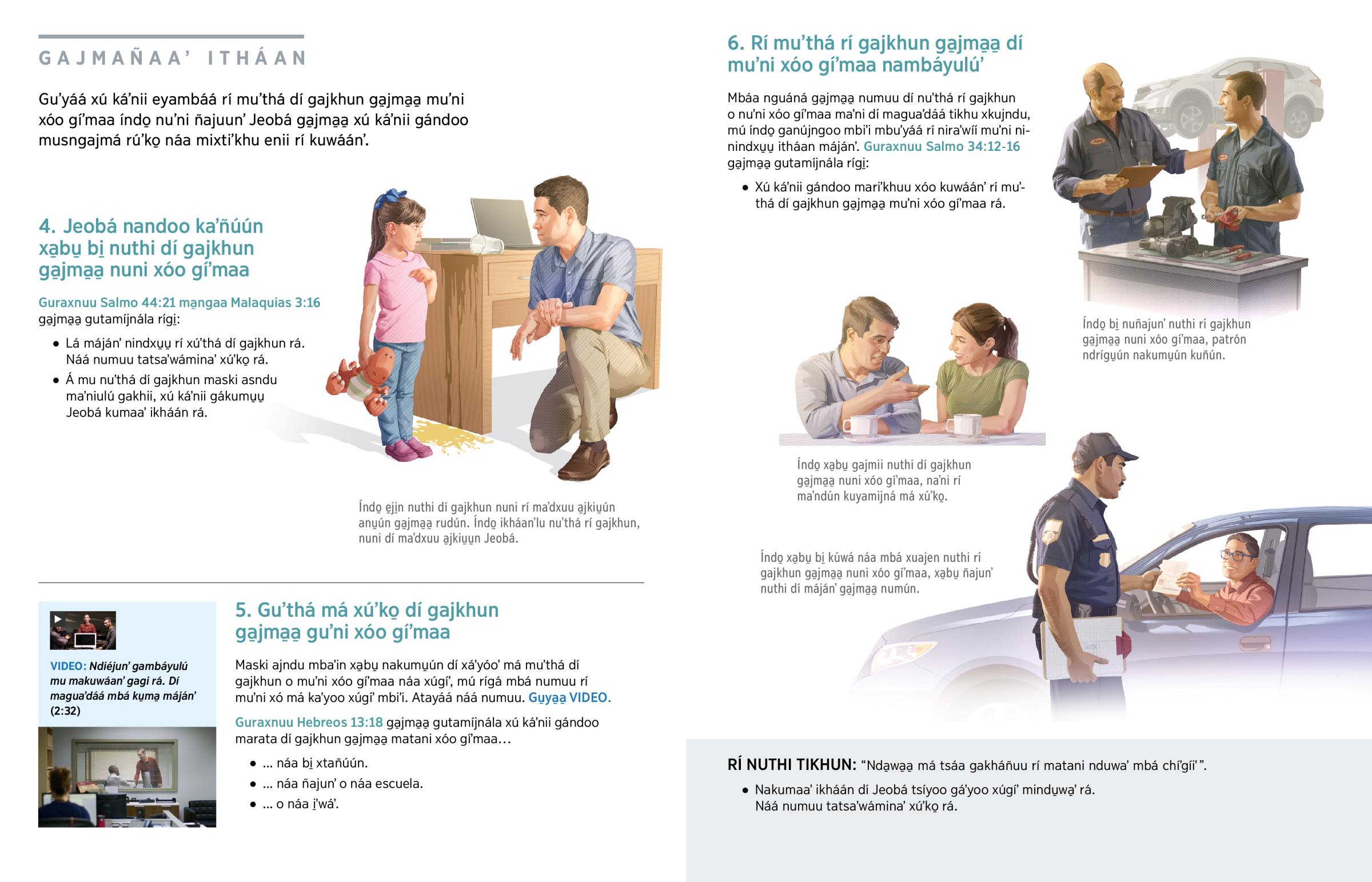 Guʼyáá xú káʼnii eyambáá rí muʼthá dí gajkhun ga̱jma̱a̱ muʼni xóo gíʼmaa índo̱ nuʼni ñajuunʼ Jeobá ga̱jma̱a̱ xú káʼnii gándoo musngajmá rúʼko̱ náa mixtiʼkhu enii rí kuwáánʼ.