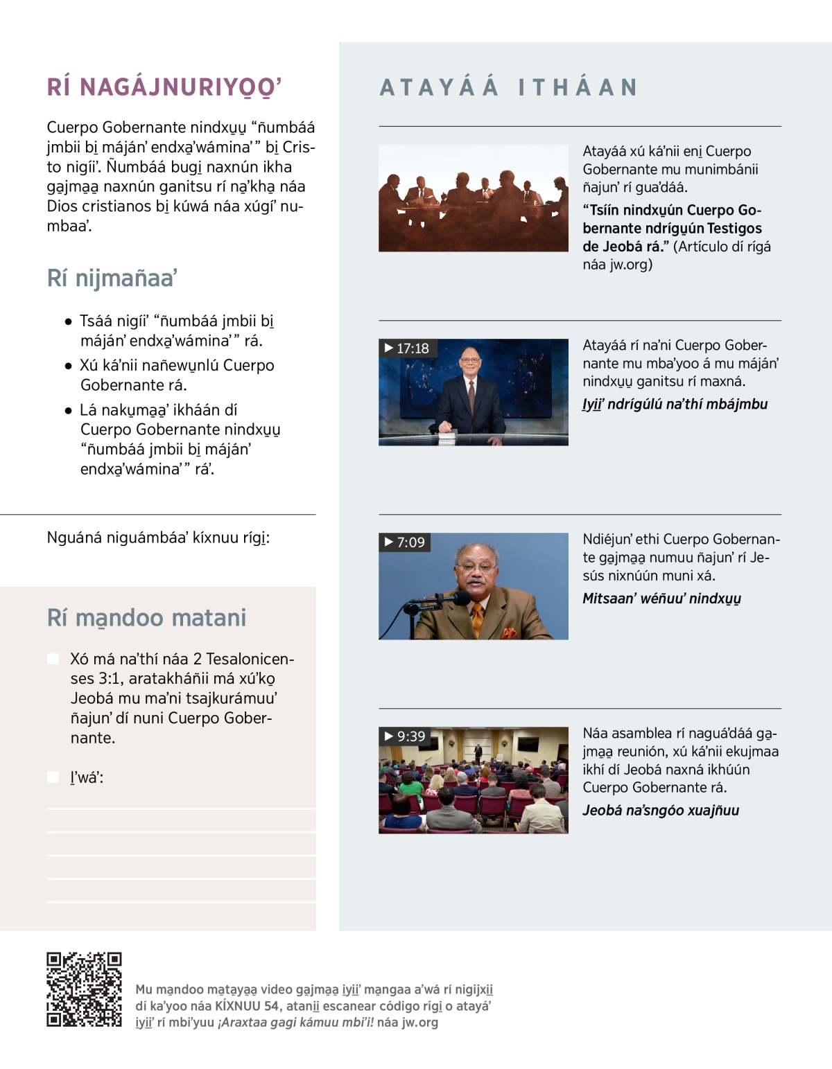 Cuerpo Gobernante naxnún ganitsu rí na̱ʼkha̱ náa Dios, naxnún ikha ga̱jma̱a̱ nambáñún testigos de Jeobá bi̱ kúwá náa xúgíʼ numbaaʼ.