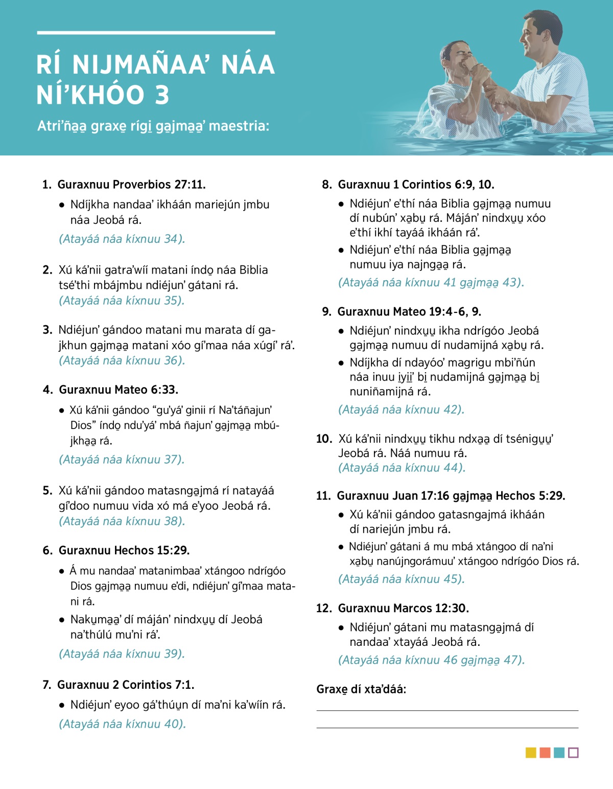 Ndiéjunʼ eʼthí náa Biblia ga̱jma̱a̱ numuu dí nubúnʼ xa̱bu̱ rá. Májánʼ nindxu̱u̱ xóo eʼthí ikhí tayáá ikháán ráʼ.