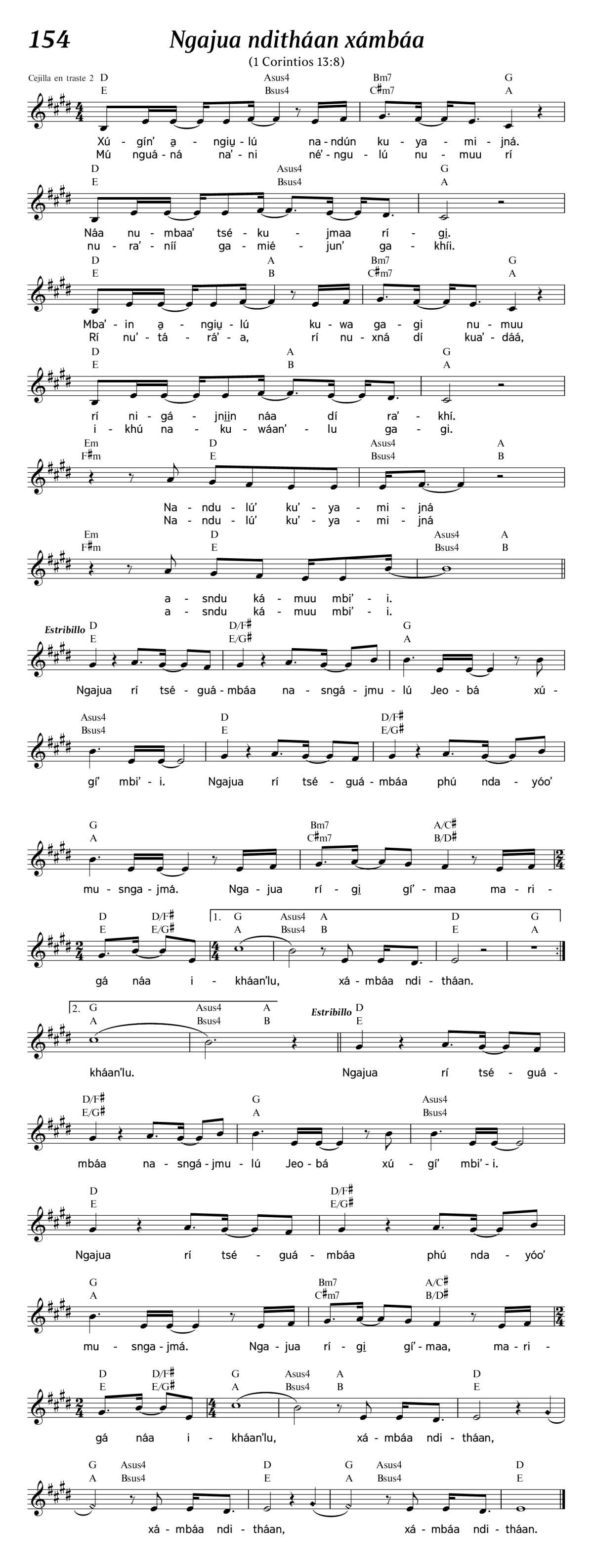 - 2. Mú nguáná naʼni - néʼngulú numuu rí - nuraʼníí gamiéjunʼ gakhii. - Rí nuʼtáraʼa, - rí nuxná dí kuaʼdáá, - ikhú nakuwáanʼlu gagi. - (PRE-ESTRIBILLO) - Nandulú kuʼyamijná - asndu kámuu mbiʼi. - (ESTRIBILLO) - Ngajua rí tséguámbáa - nasngájmulú Jeobá - xúgíʼ mbiʼi. - Ngajua rí tséguámbáa - phú ndayóoʼ musngajmá. - Ngajua rígi̱ gíʼmaa - marigá náa ikháanʼlu. - (ESTRIBILLO) - Ngajua rí tséguámbáa - nasngájmulú Jeobá - xúgíʼ mbiʼi. - Ngajua rí tséguámbáa - phú ndayóoʼ musngajmá. - Ngajua rígi̱ gíʼmaa - marigá náa ikháanʼlu, - xámbáa nditháan uuh. - Xámbáa nditháan.