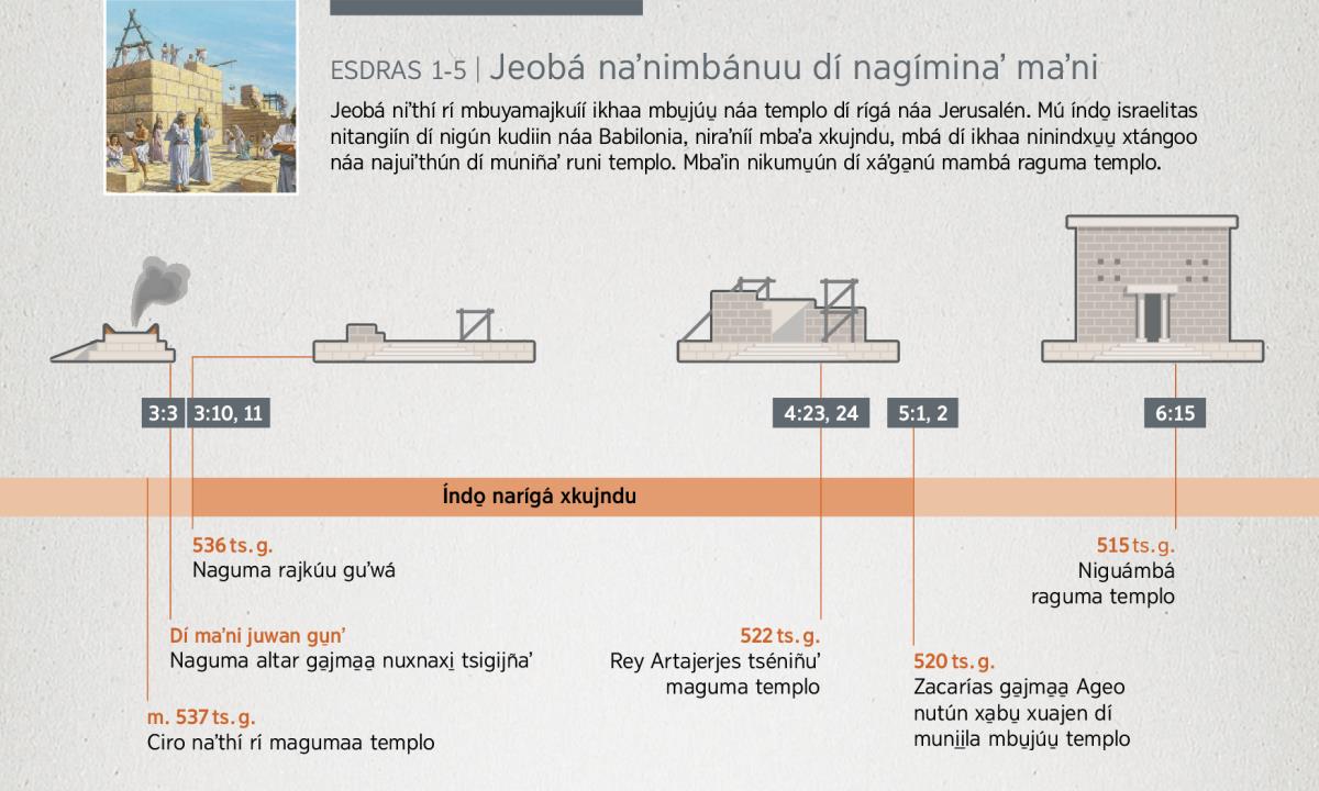 Jeobá niʼthí rí mbuyamajkuíí ikhaa mbu̱júu̱ náa templo dí rígá náa Jerusalén. Mú índo̱ israelitas nitangiín dí nigún kudiin náa Babilonia, niraʼníí mbaʼa xkujndu, mbá dí ikhaa ninindxu̱u̱ xtángoo náa najuiʼthún dí muniñaʼ runi templo. Mbaʼin nikumu̱ún dí xáʼga̱nú mambá raguma templo.