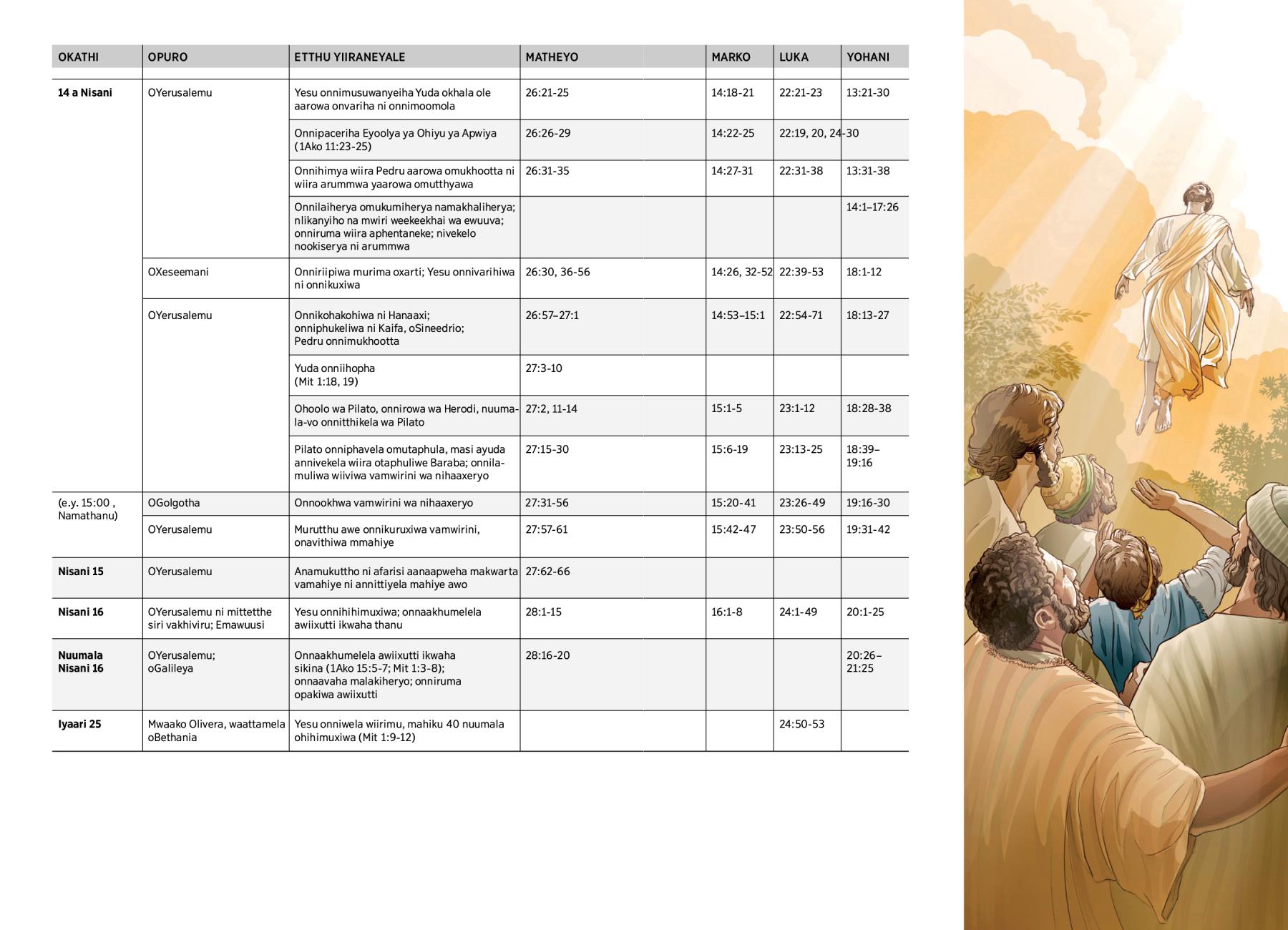 Onnaakhumelela awiixutti ikwaha sikina (1Ako 15:5-7; Mit 1:3-8); onnaavaha malakiheryo; onniruma opakiwa awiixutti |