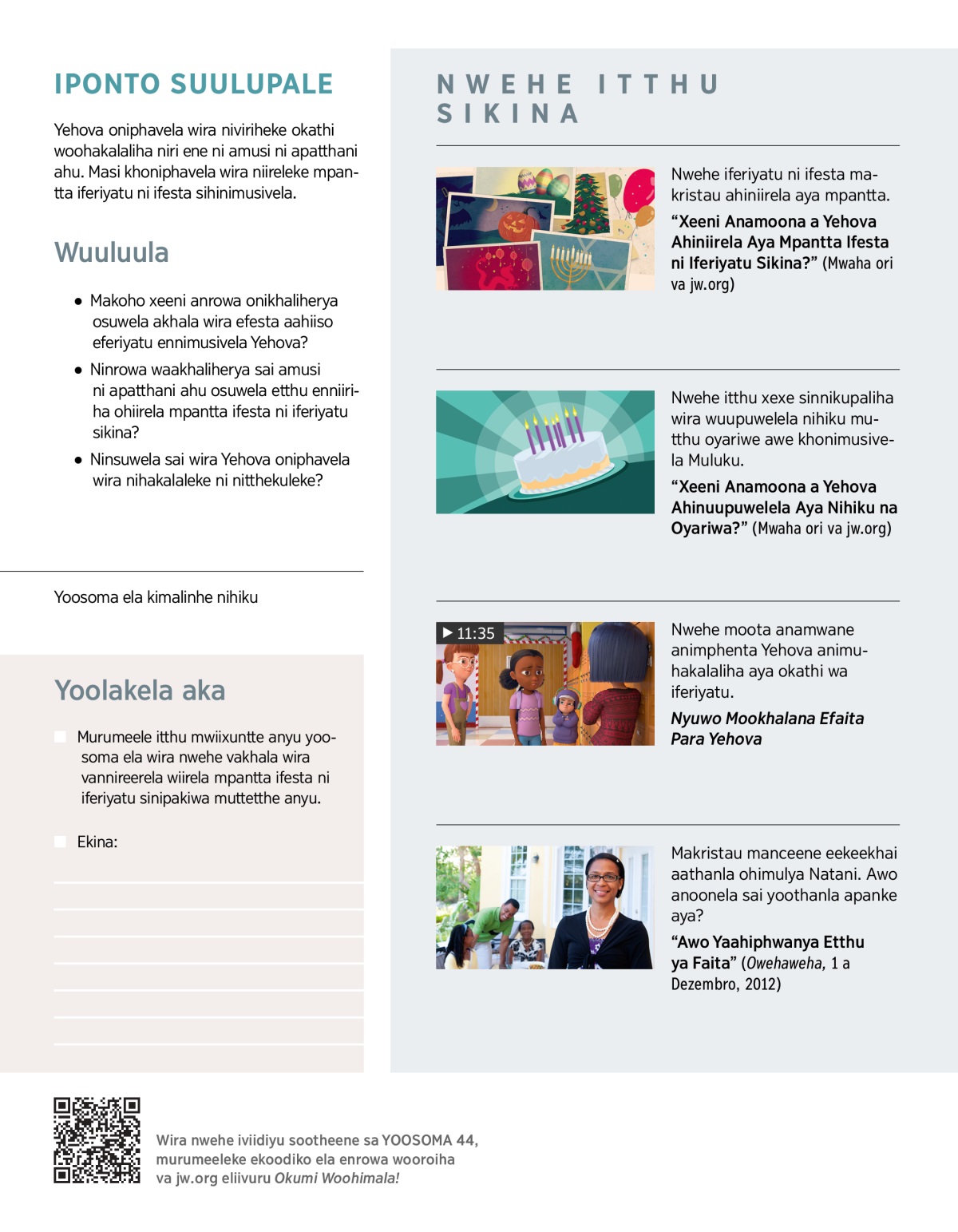 “Xeeni Anamoona a Yehova Ahiniirela Aya Mpantta Ifesta ni Iferiyatu Sikina?” (Mwaha ori va jw.org)