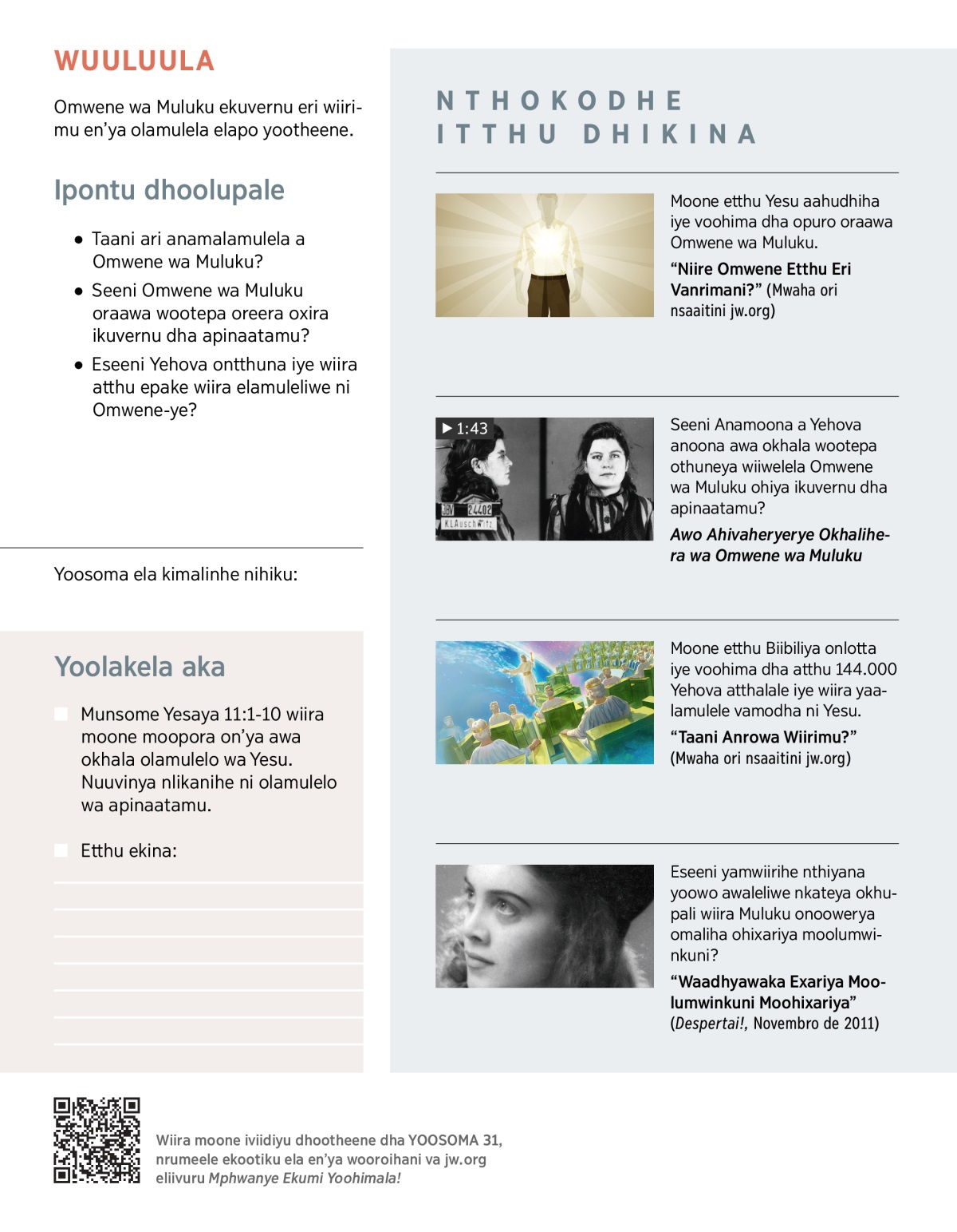 “Niire Omwene Etthu Eri Vanrimani?” (Mwaha ori nsaaitini jw.org)