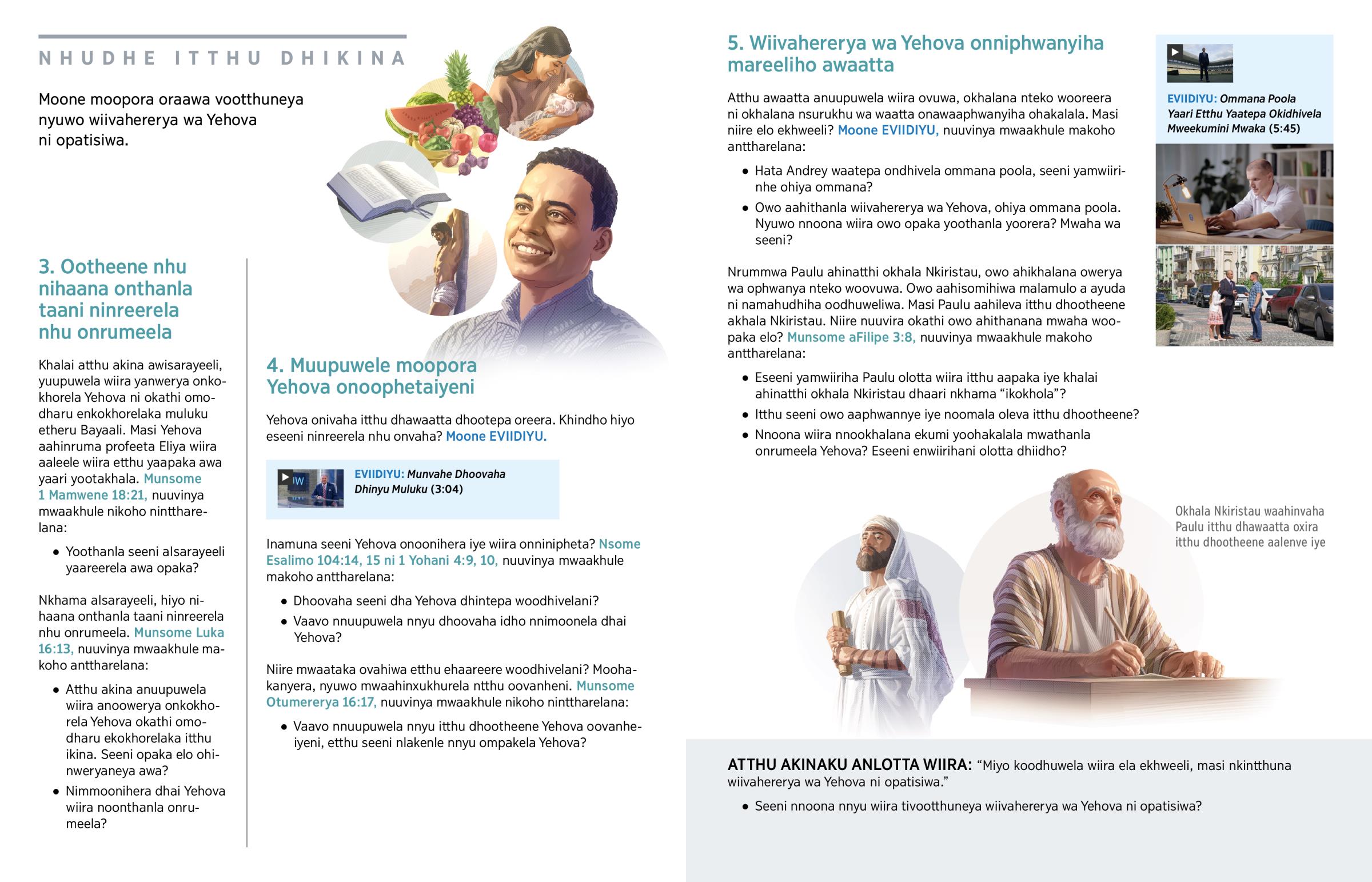 • Nnoona wiira nnookhalana ekumi yoohakalala mwathanla onrumeela Yehova? Eseeni enwiirihani olotta dhiidho?