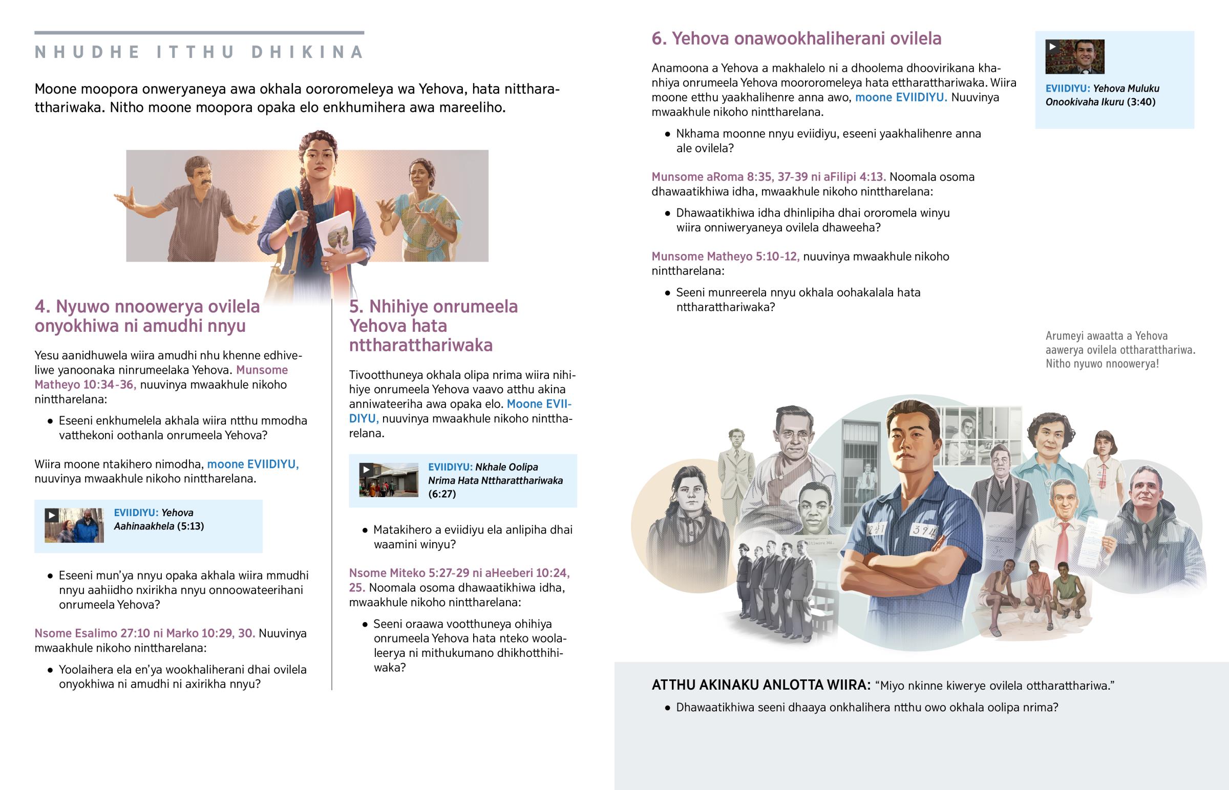 Nsome Miteko 5:27-29 ni aHeeberi 10:24, 25. Noomala osoma dhawaatikhiwa idha, mwaakhule nikoho ninttharelana: