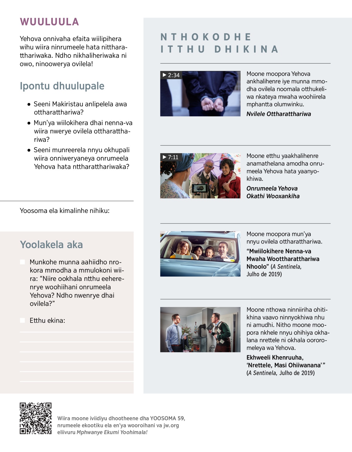 “Mwiilokihere Nenna-va Mwaha Woottharatthariwa Nhoolo” (A Sentinela, Julho de 2019)