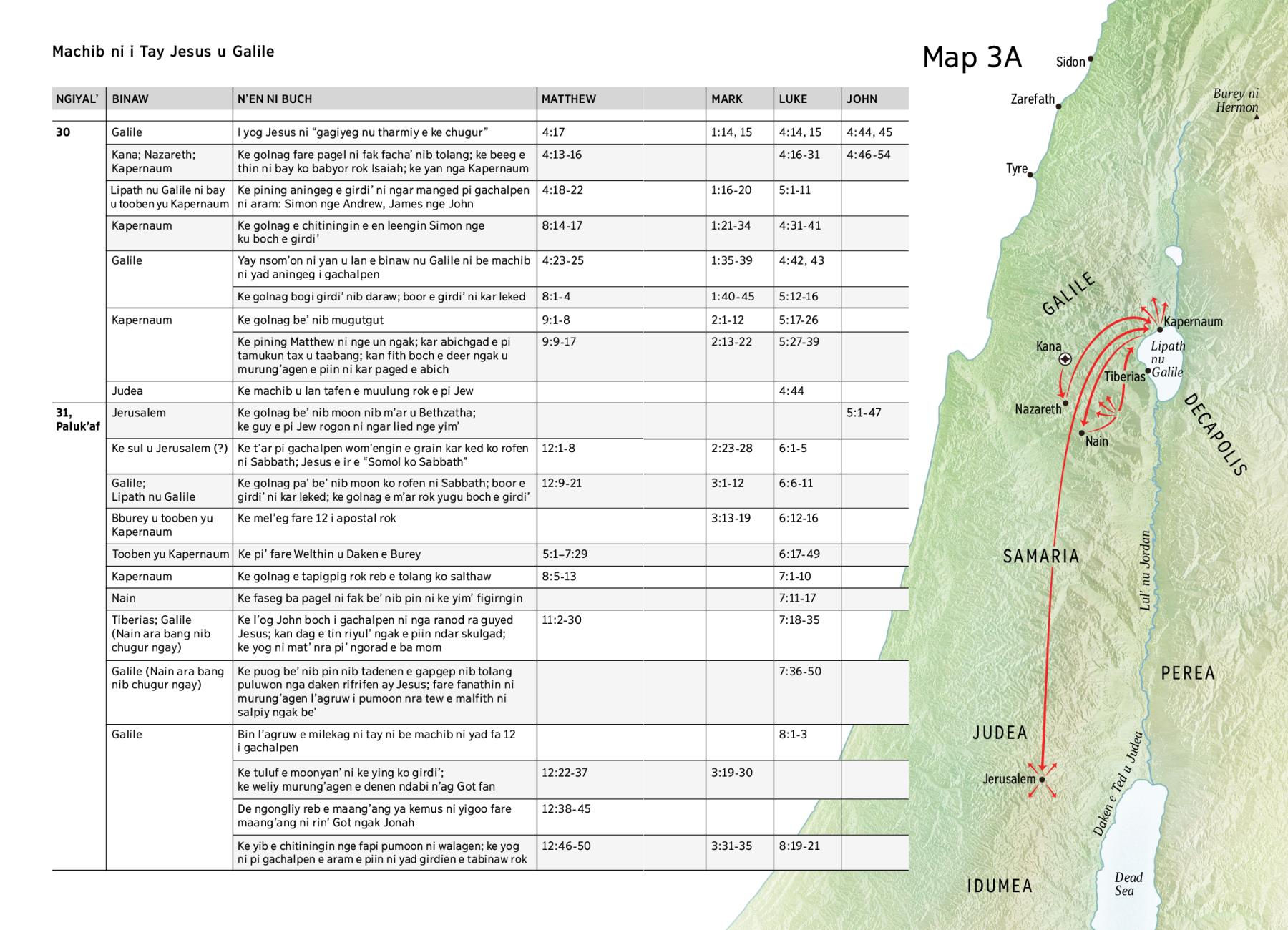 • 4-C Pi N’en nib Ga’ Fan ni i Buch u Lan e Yafos rok Jesus u Nap’an ni Immoy u Fayleng​—Machib ni i Tay Jesus u Galile (Guruy ni 1)